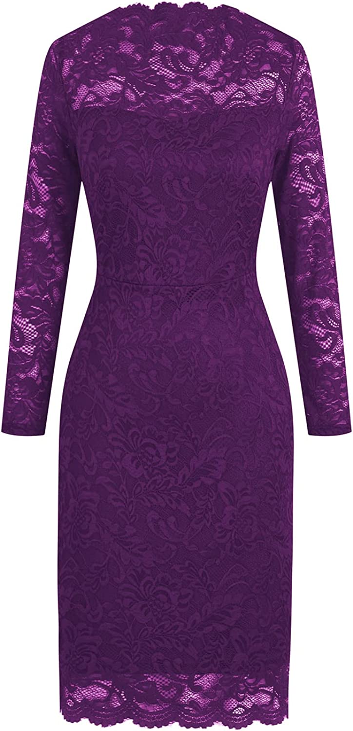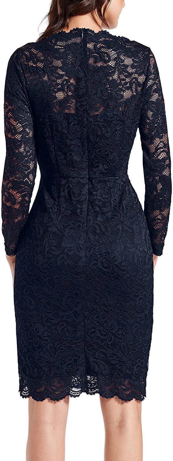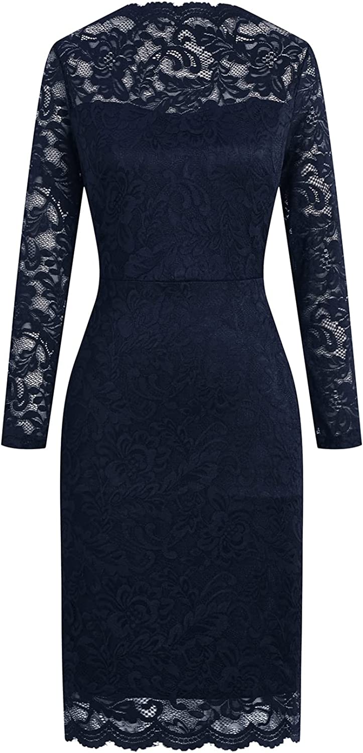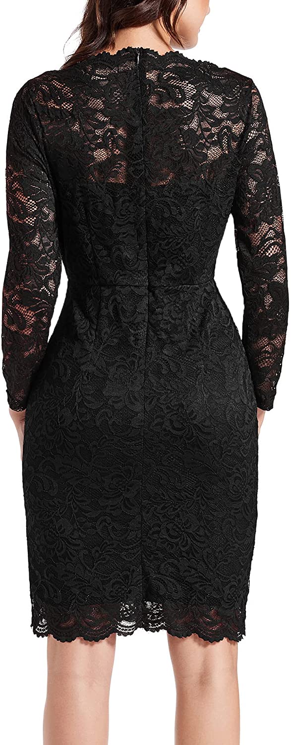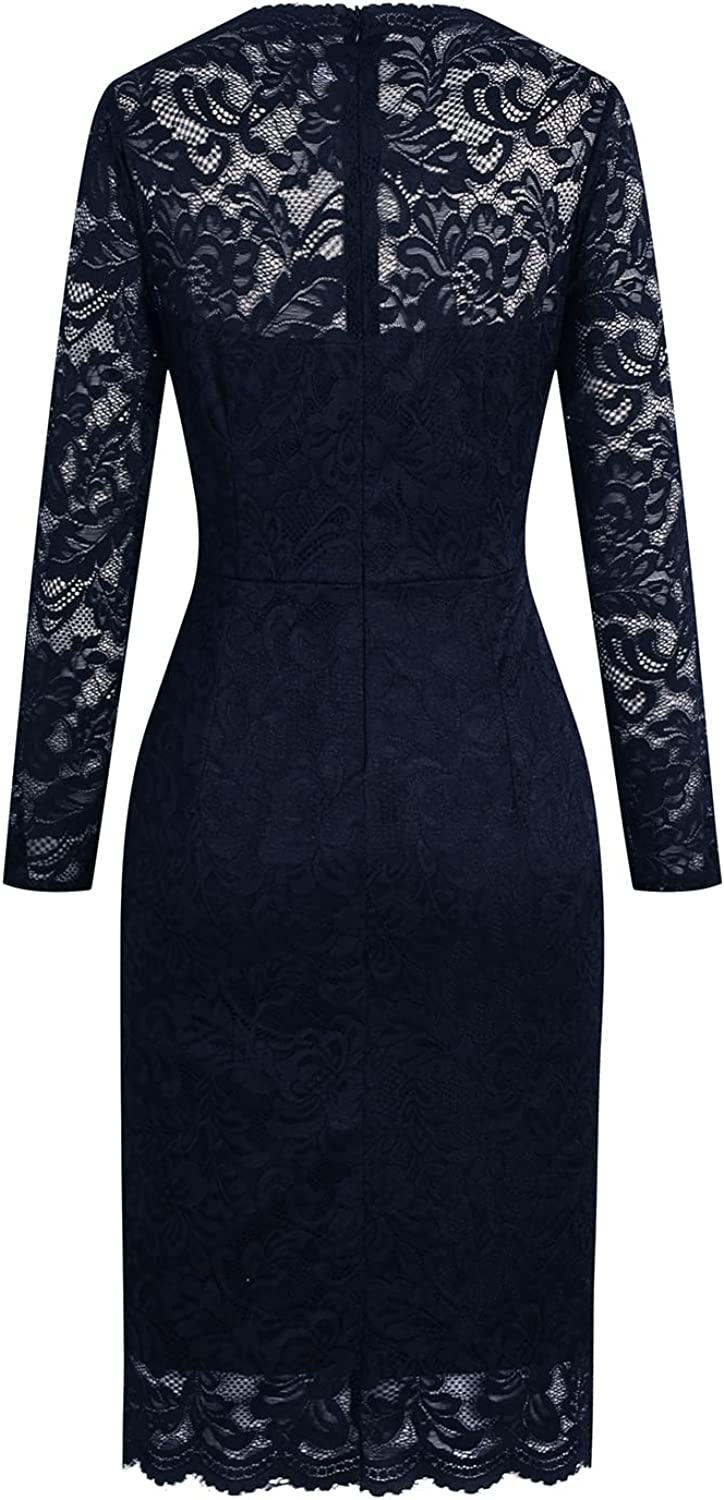 MSLG Women's Elegant Floral Lace Business Bateau Neck Long Sleeves Cocktail Wedding Guest Bodycon Pencil Dress 906