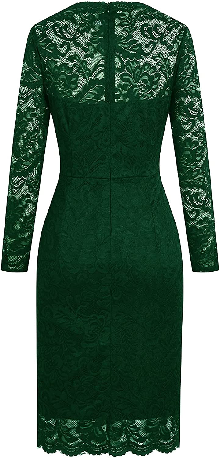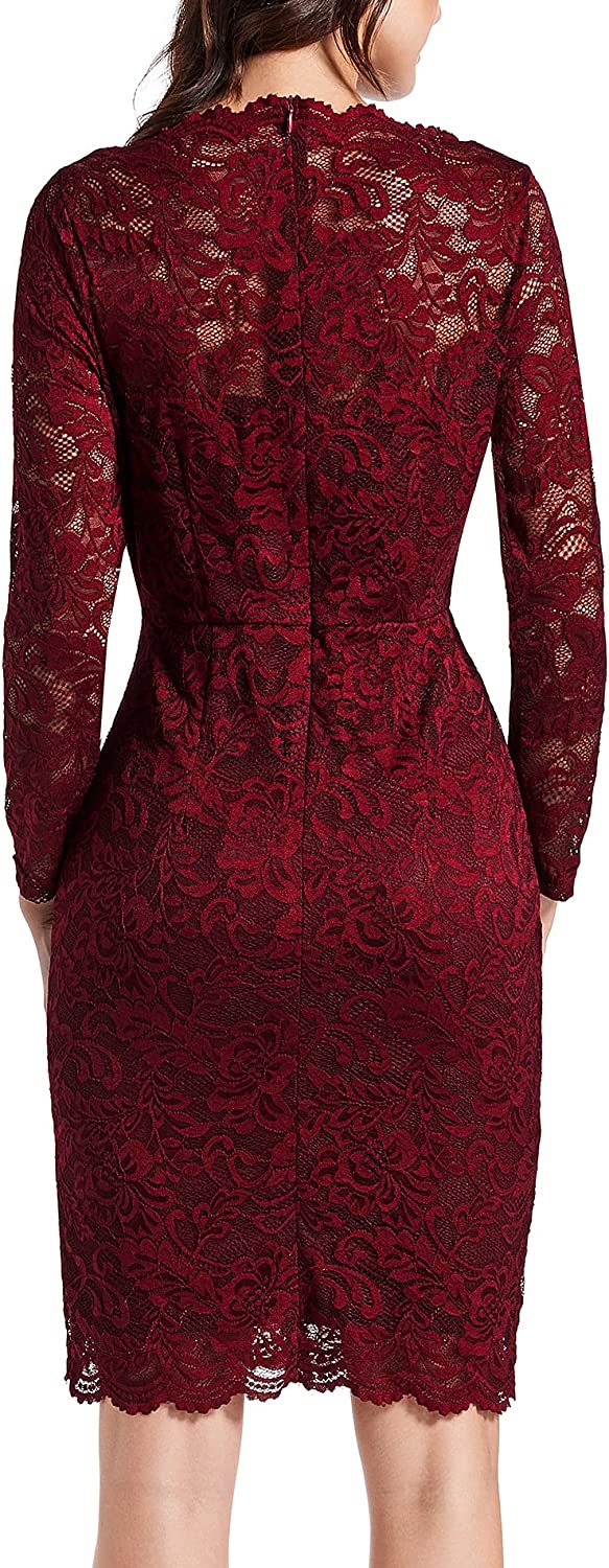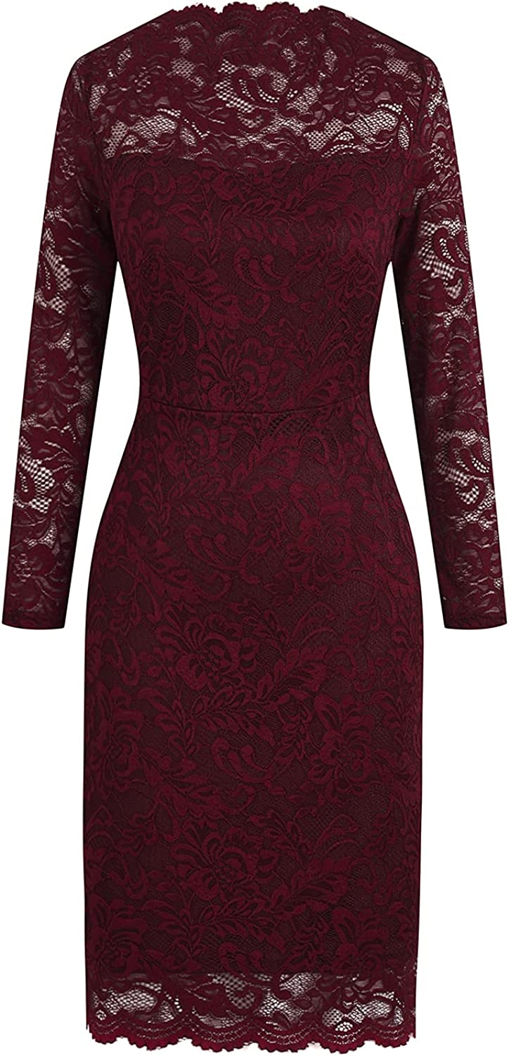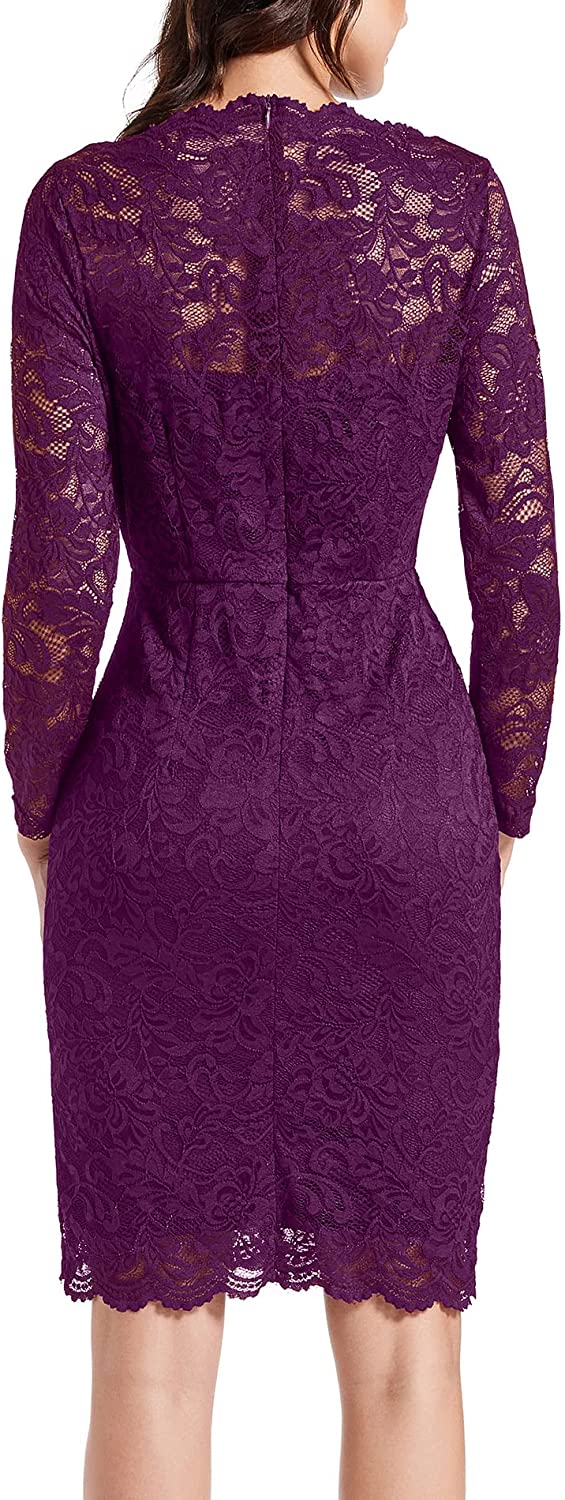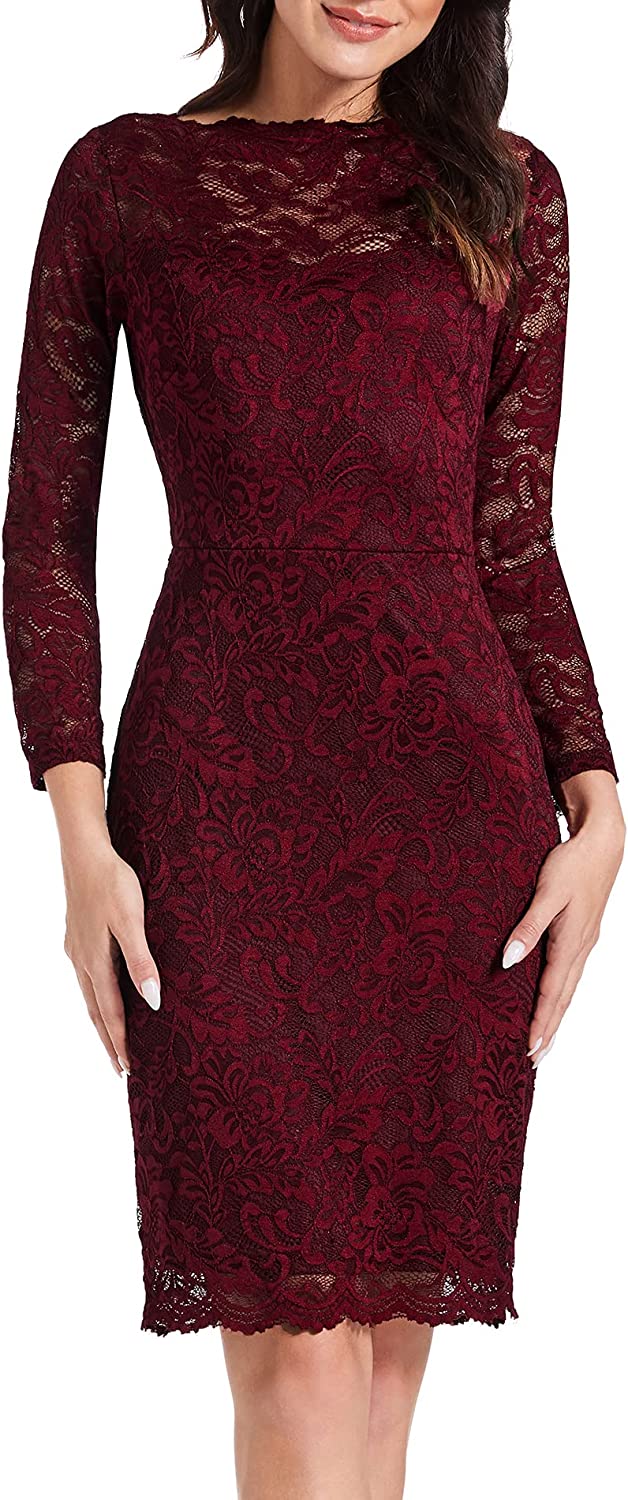 MSLG Women's Elegant Floral Lace Business Bateau Neck Long Sleeves Cocktail Wedding Guest Bodycon Pencil Dress 906