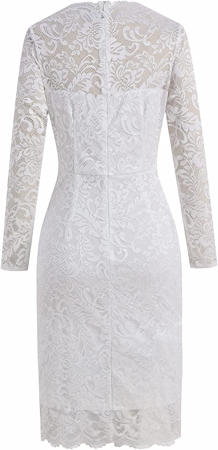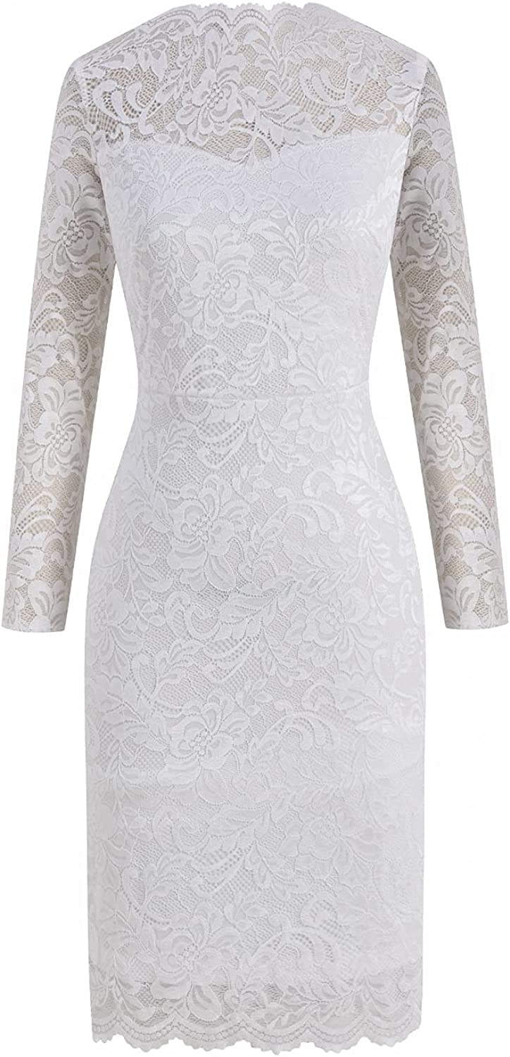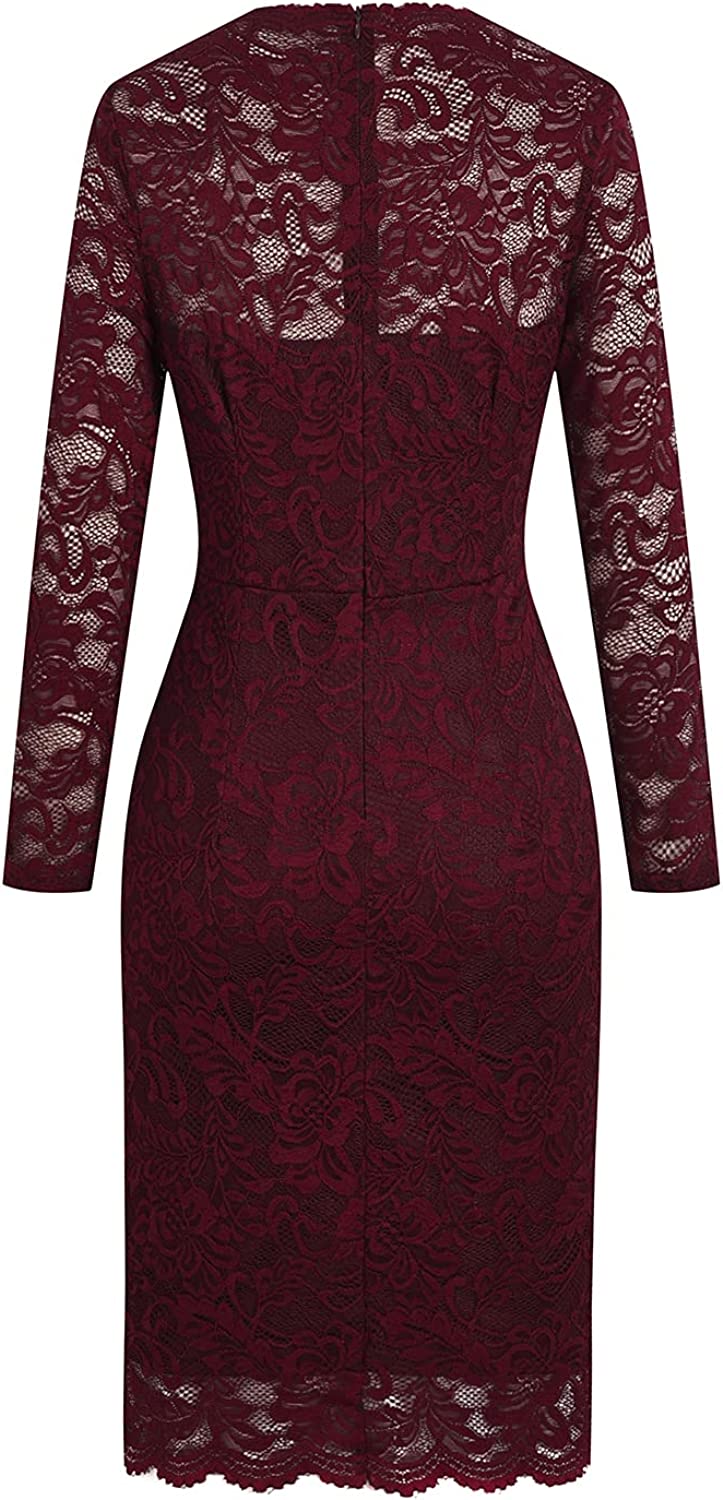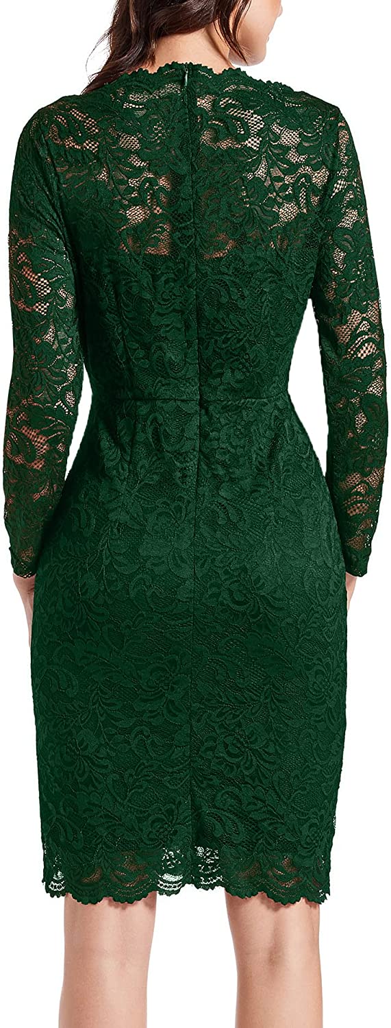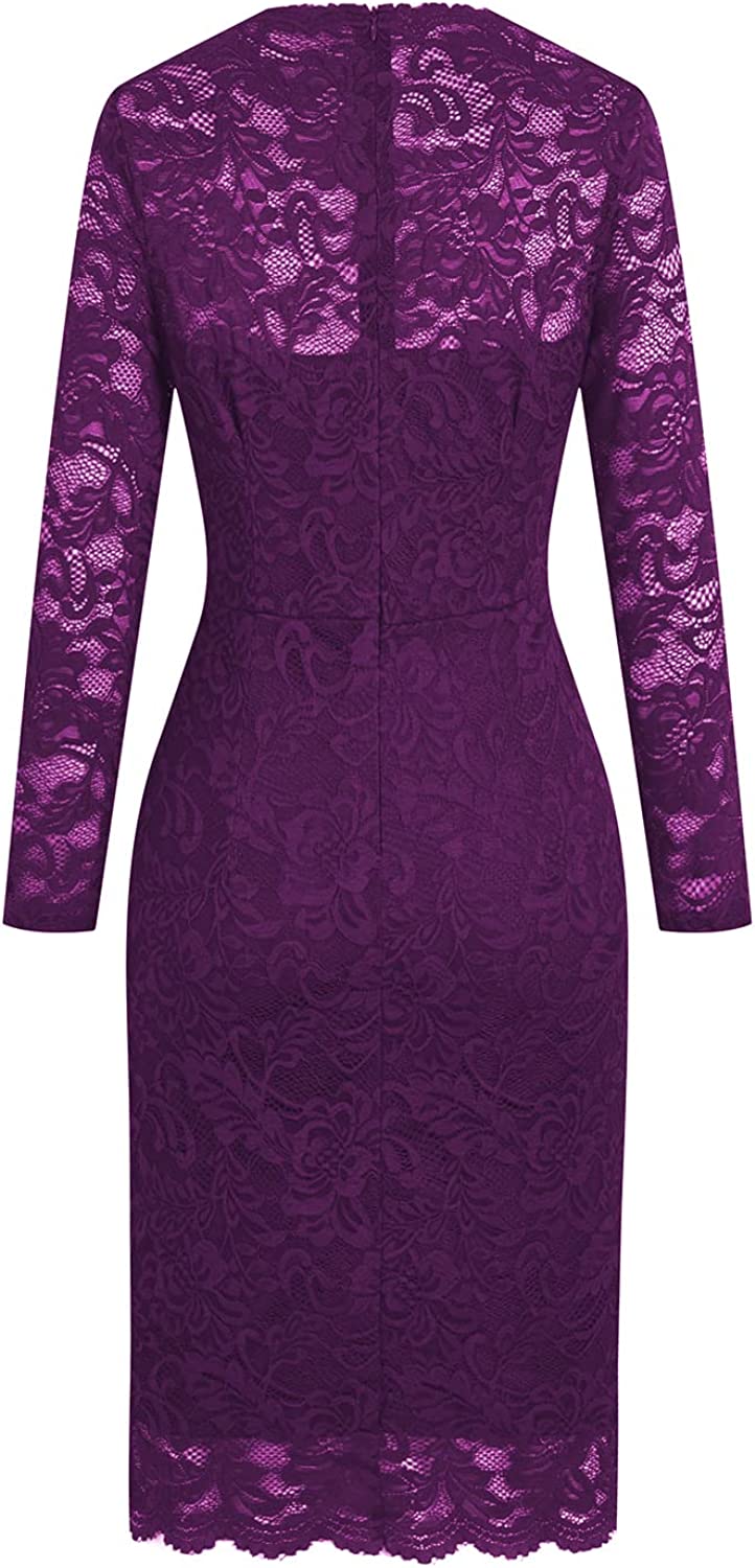 MSLG Women's Elegant Floral Lace Business Bateau Neck Long Sleeves Cocktail Wedding Guest Bodycon Pencil Dress 906