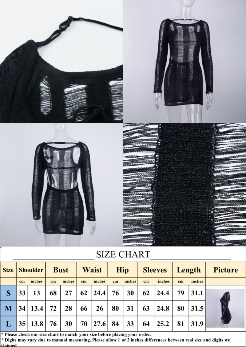 Pdxnyxx Long Sleeve Dress for Women Sexy Y2k Dress Y2k Sweater Bodycon Dresses for Women Y2k Tops (Black,M,Medium)