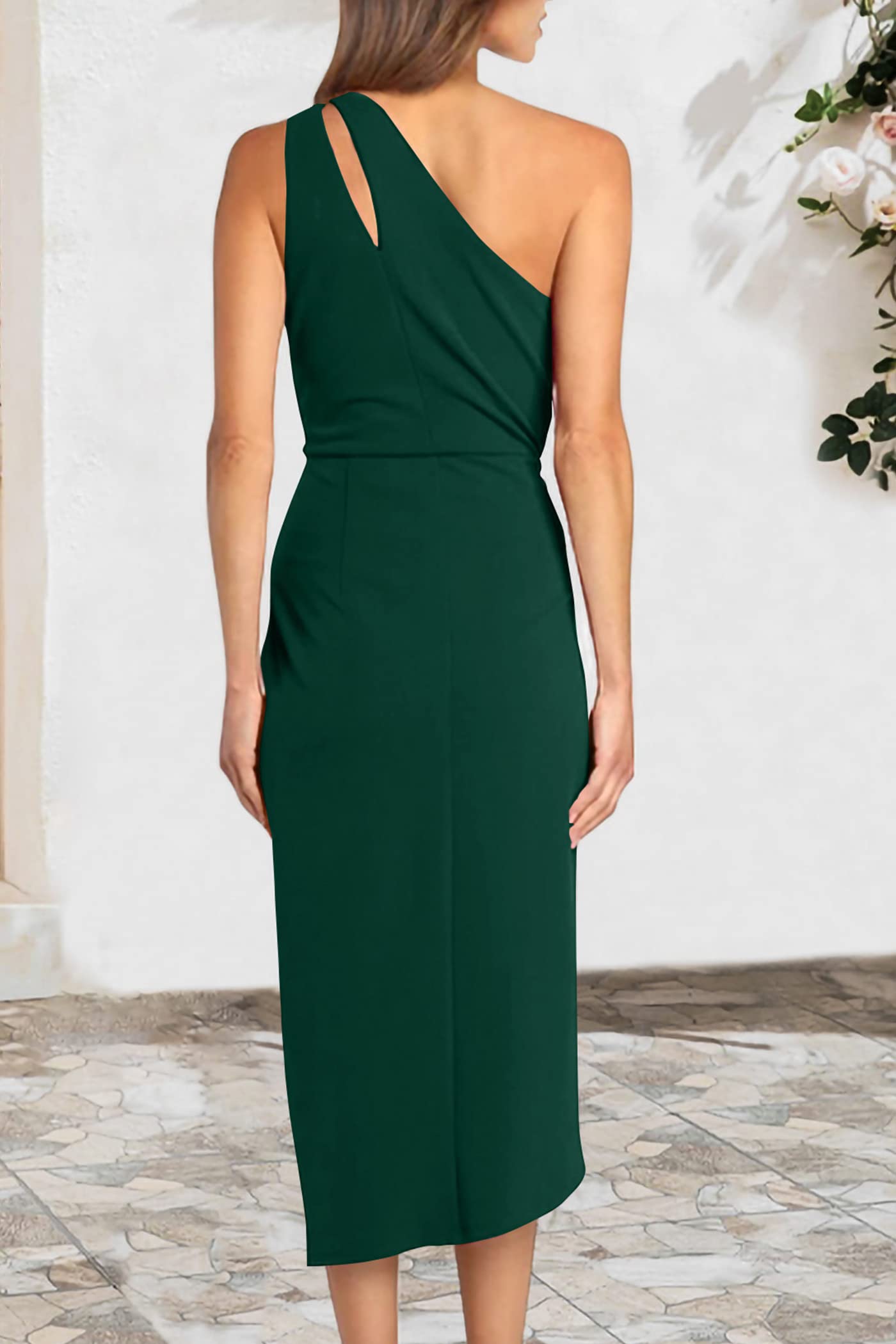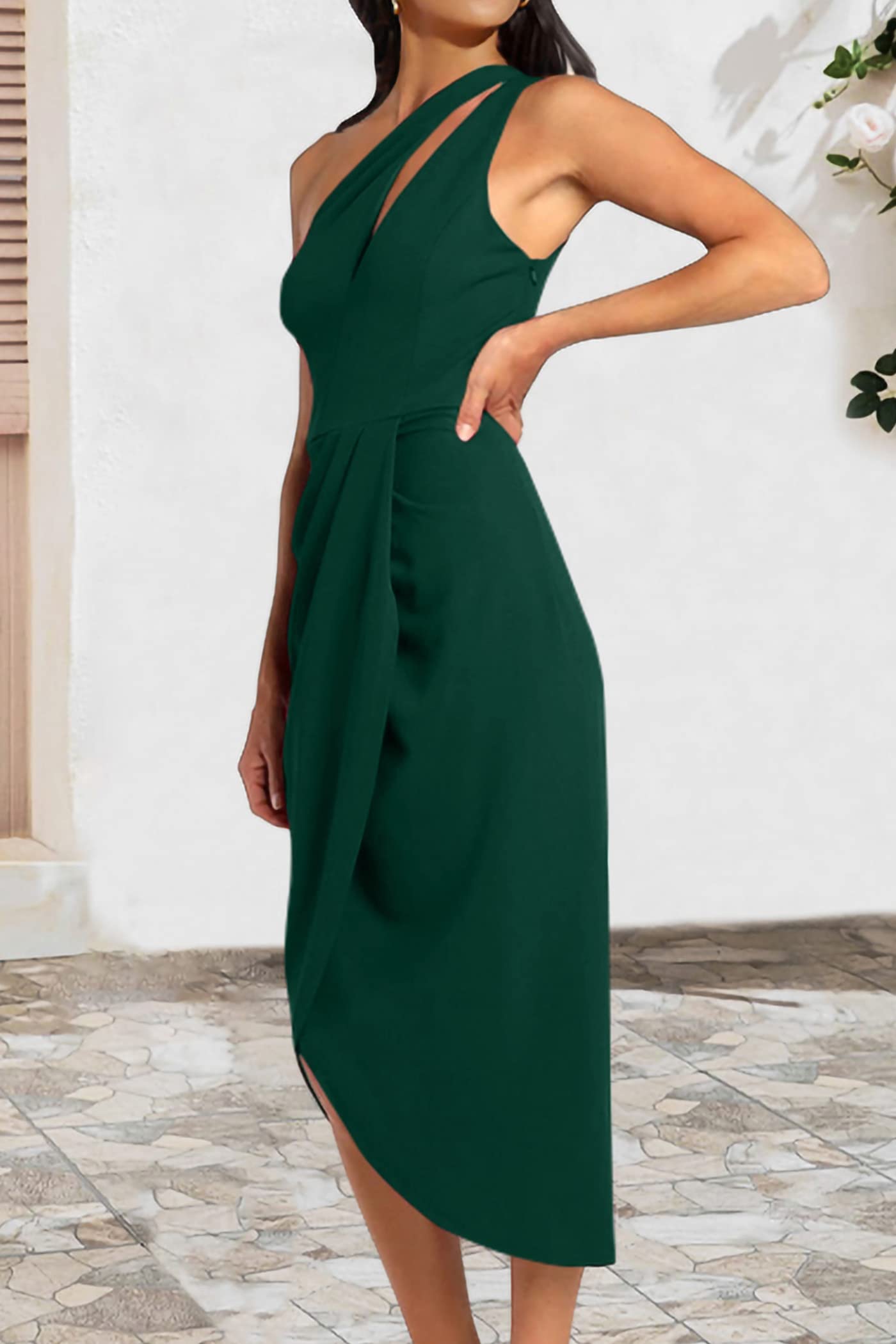 • TRENDY FEATURES: The Midi Dress Features In One Shoulder Design, Accentuate Your Delicate Shoulders. Women Ruched Bodycon Dress Modify Your Figure Well, Show Your Sexy Curve. The Cutout Style Shows Off Your Femininity Charm. This Asymmetrical Wrap Dress With Slit Hem Make Your Legs Look Slender. Summer Sleeveless Fitted Dress Highlights Your Elegant And Classy Temperaments.