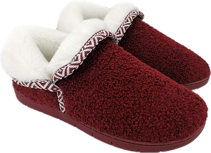 ofoot Women's Warm Fuzzy House Slippers with Back, Faux Fur Bedroom Shoes Soft Thick Memory Foam Plush Lining Indoor Outdoor Non Slip Rubber Soles