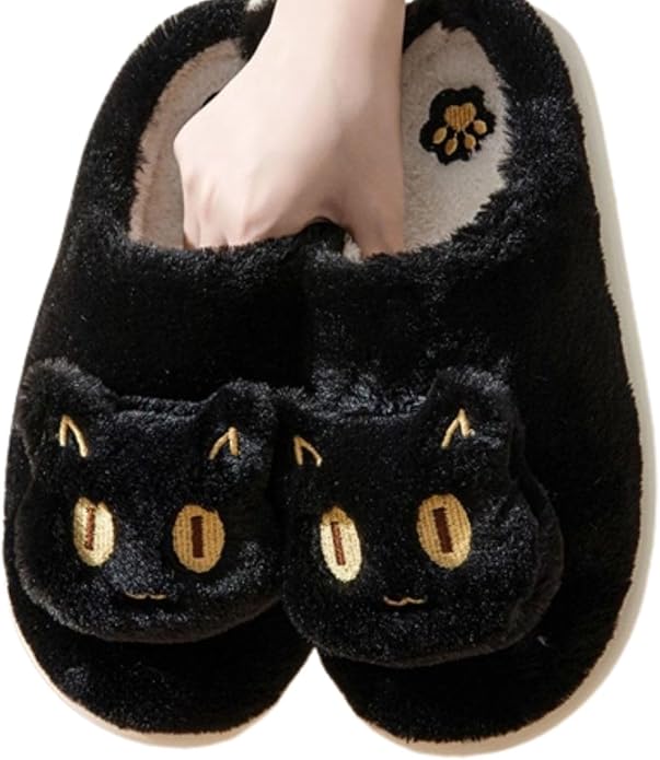 Soft Plush Comfy Warm Couple Slip-On House Cute Cat Face Slippers For Winter, Non-slip Fuzzy Flat Slides for Women Indoor Outdoor