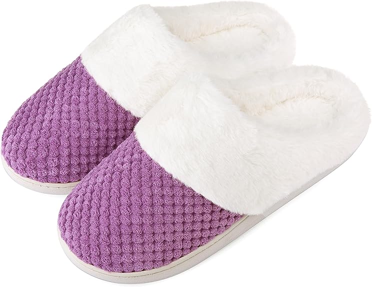 VONMAY Women's Slip on Fuzzy House Slippers Comfy Coral Velvet, Plush Faux Fur Soft Bedroom Shoes with Memory Foam