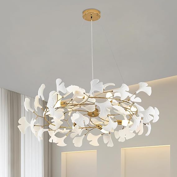 Chandeliers for Dining Room - D23'' Modern Gold Round Brass Tree Branch Chandelier, Art Deco Leaf Foyer Bathroom Chandelier for Bedroom, Living Room, High Ceilings