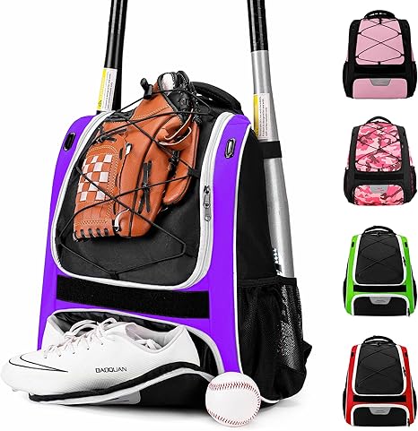 HMLIN Baseball Bag, Baseball Backpack, Softball Bat Bag with Shoes Compartment for Youth Adults, Lightweight Baseball Bag with T-Ball & Softball Equipment & Gear