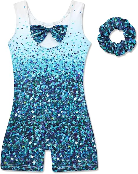 Move Dance Girls Gymnastics Leotards with Shorts Dance Biketards Unitards Tumbling Outfit Matching Hair Scrunchie 4-10 Years