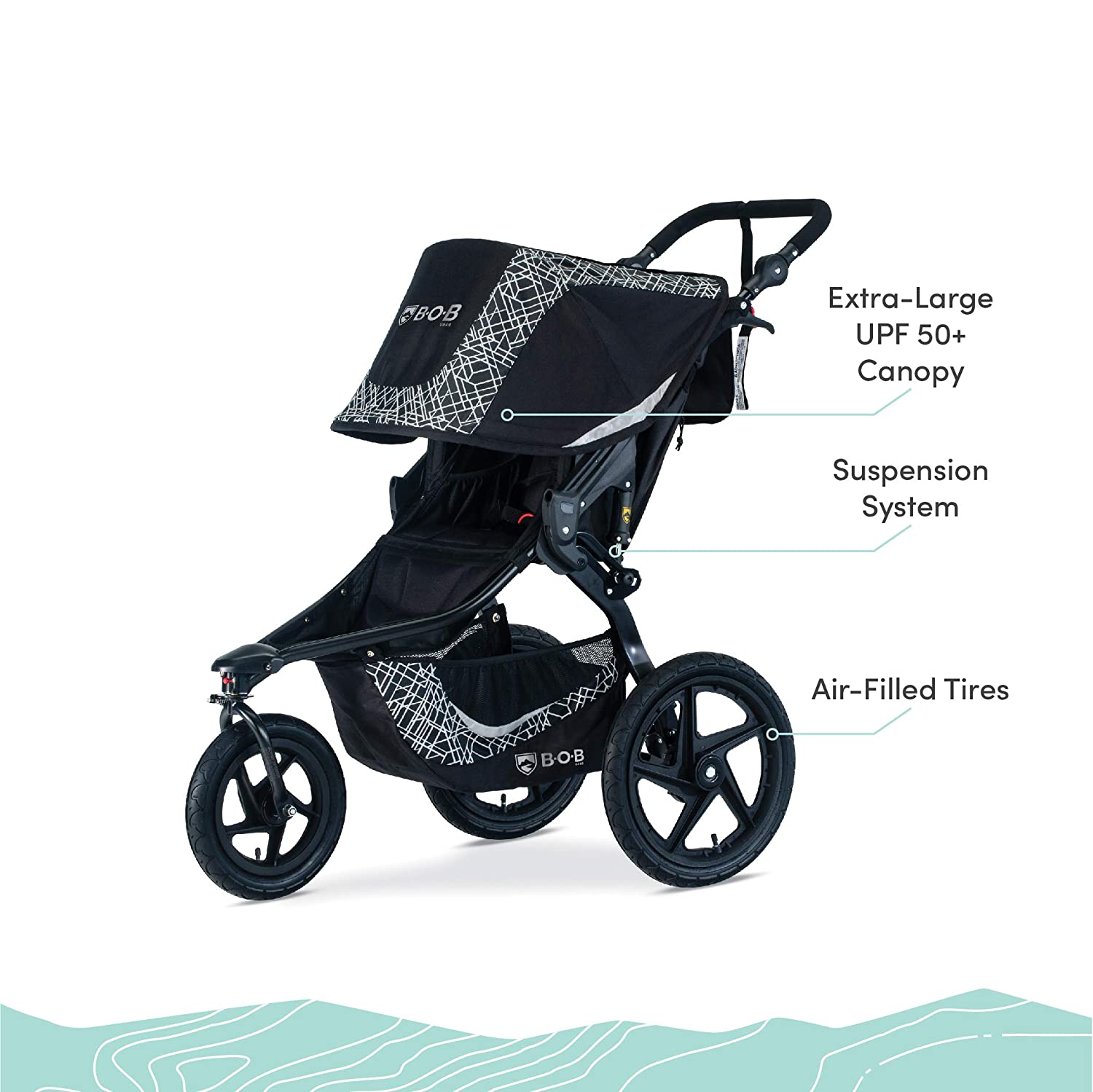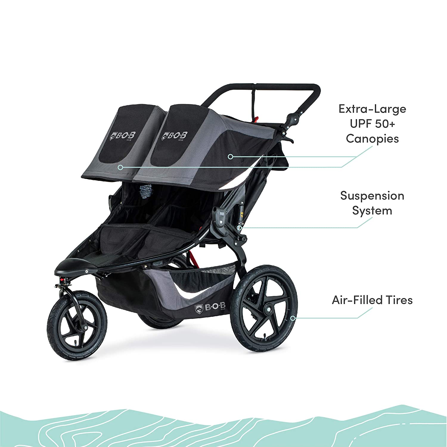 BOB Gear Bundle, Revolution Flex 3.0 Duallie Double Jogging Stroller, Graphite Black + BOB Gear Snack Tray for Duallie Jogging Strollers, Black + BOB Handlebar Console for Duallie Jogging Strollers