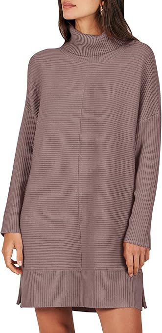 ANRABESS Women's Oversized Turtleneck Sweater Dress Pullover Batwing Sleeve Split Hem Tunics Fall Casual Short Dresses