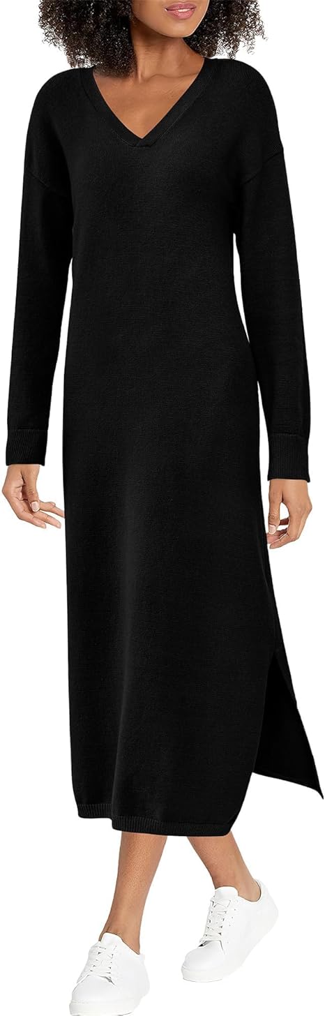 BTFBM Women Fall Sweater Dress Casual V Neck Long Sleeve Slit Knit Oversized Maternity Sweaters Maxi Dresses 2025 Winter