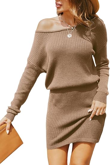 CUPSHE Womens Long Sleeve One Shoulder Knitted Sweater Dress Winter Asymmetrical Mini Dress Sweater
