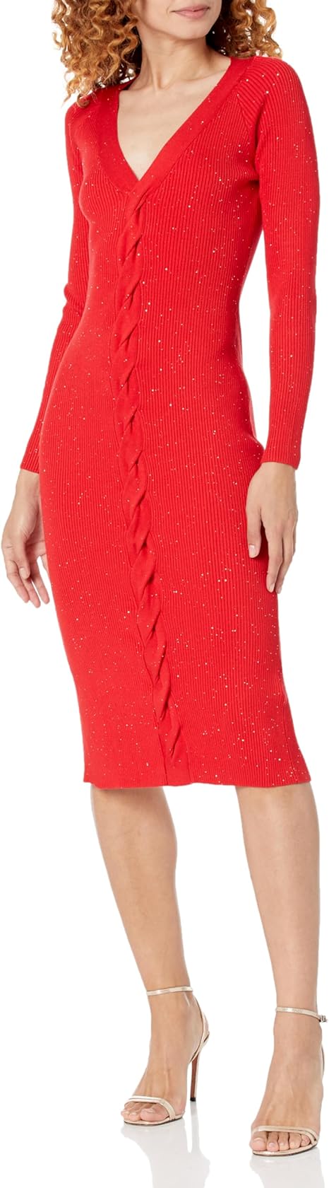 GUESS Women's Long Sleeve Celia Micro Sequin Sweater Dress