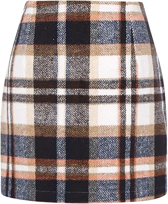 IDEALSANXUN Womens High Waist Plaid Skirt Bodycon Pencil Wool Mini Skirts