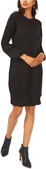 Vince Camuto Womens Black Distressed Rib-knit Trim Layered-look Long Sleeve Round Neck Knee Length Wear to Work Sweater Dress XL