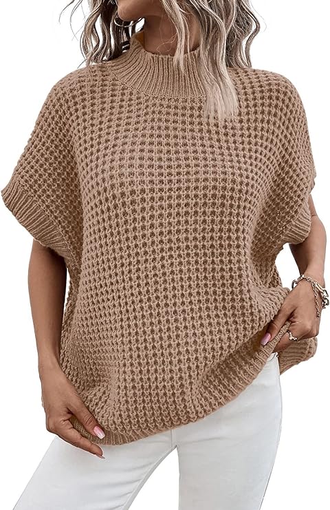 Viottiset Womens Oversized Short Batwing Sleeve Mock Neck Sweater Vest Fall Sleeveless Pullover Knit Sweaters