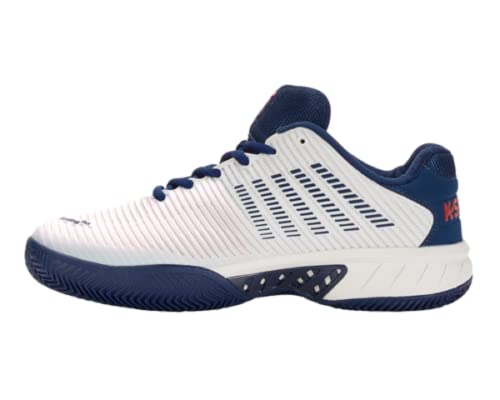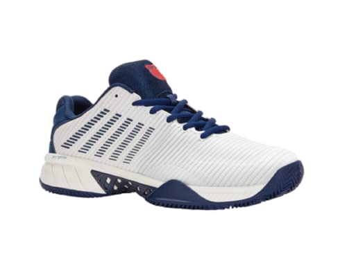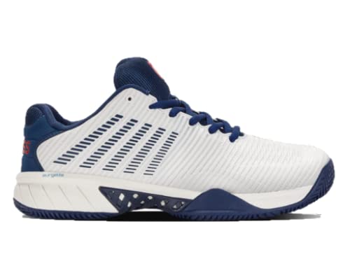 Details: K-Swiss best-selling shoe, the Hypercourt Express 2, is light, comfortable, breathable, and has a generous fit, making it the ideal choice for a variety of playing styles and levels. Durawrap Flex, gives the shoe support with no break-in period, while Surgelite midsole technology provides all-day comfort. The shoe also features a deep grooved herringbone outsole for exceptional traction on clay court surfaces.