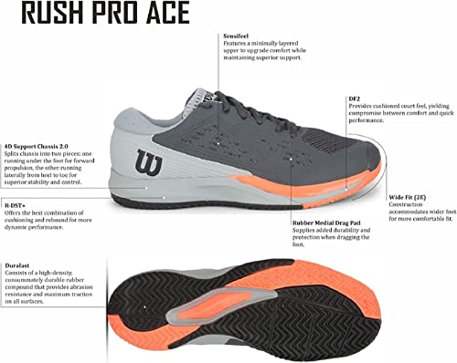 • Elevate your performance with the Wilson Rush Pro Ace shoes.