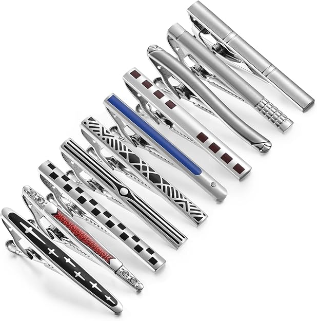 wynameleri Tie Pins for Men Silver Black 3 Pcs 10 PCS Short Tie Clip Set 2.3, 2.4 Inch Business Shirt Necktie Pinch for Men