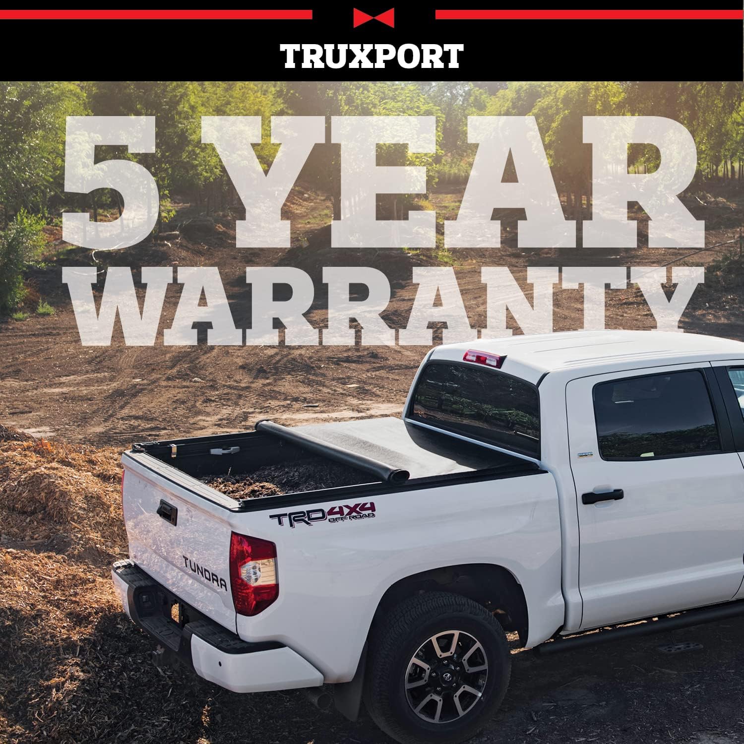 If you’re looking for a soft roll-up truck bed cover that is watertight and easy to use at an affordable price, TruXedo's TruXport is for you. This cover is made with quality, leather grain black material that is durable and holds up to harsh weather. It sits 1.5" above the truck bed providing a low profile appearance that complements your truck. On top of it's distinctive good looks, TruXport is paired with dual paddle latches located at each side of the tailgate. To open, simply unlock each latch and roll the cover up to the cab. Its convenient cab buckle keeps the cover rolled up tight and secure while your vehicle is in motion. This roll-up cover does not flap or move when on the highway thanks to its pre-set tension control system. To keep this cover tight to the cab and looking great all year long, easily adjust the tension manually. Not only is this cover easy to operate, it can be removed completely from the truck bed without tools and in seconds. TruXport has cross bar bows built in allowing it to stand guard against heavy snow load during cold winter months.