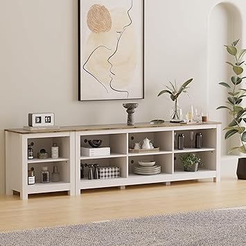 TV Stand for 85 Inch TV, White Entertainment Center for 80 inch TV Console Table with 8 Cubby Storage for Living Room Bedroom