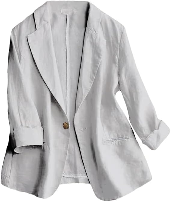 IDEALSANXUN 2024 Linen Blazer Women 3/4 Sleeve Lightweight Spring Summer Blazer Jackets