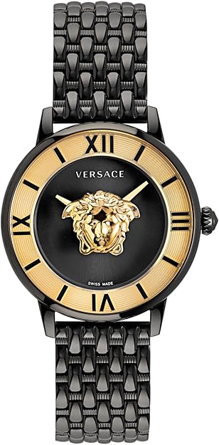 Versace La Medusa Collection Luxury Womens Watch Timepiece with a Black Bracelet featuring a Black Case and Black Dial