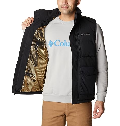 Details: This versatile vest combines water resistance, down-like Thermarator Insulation, and an Omni-Heat Infinity thermal-reflective liner that helps maintain heat. It features a zippered chest pocket and dual entry hand pockets. Columbia offers this vest in multiple colors and sizes. Extended sizing available. Regular fit.