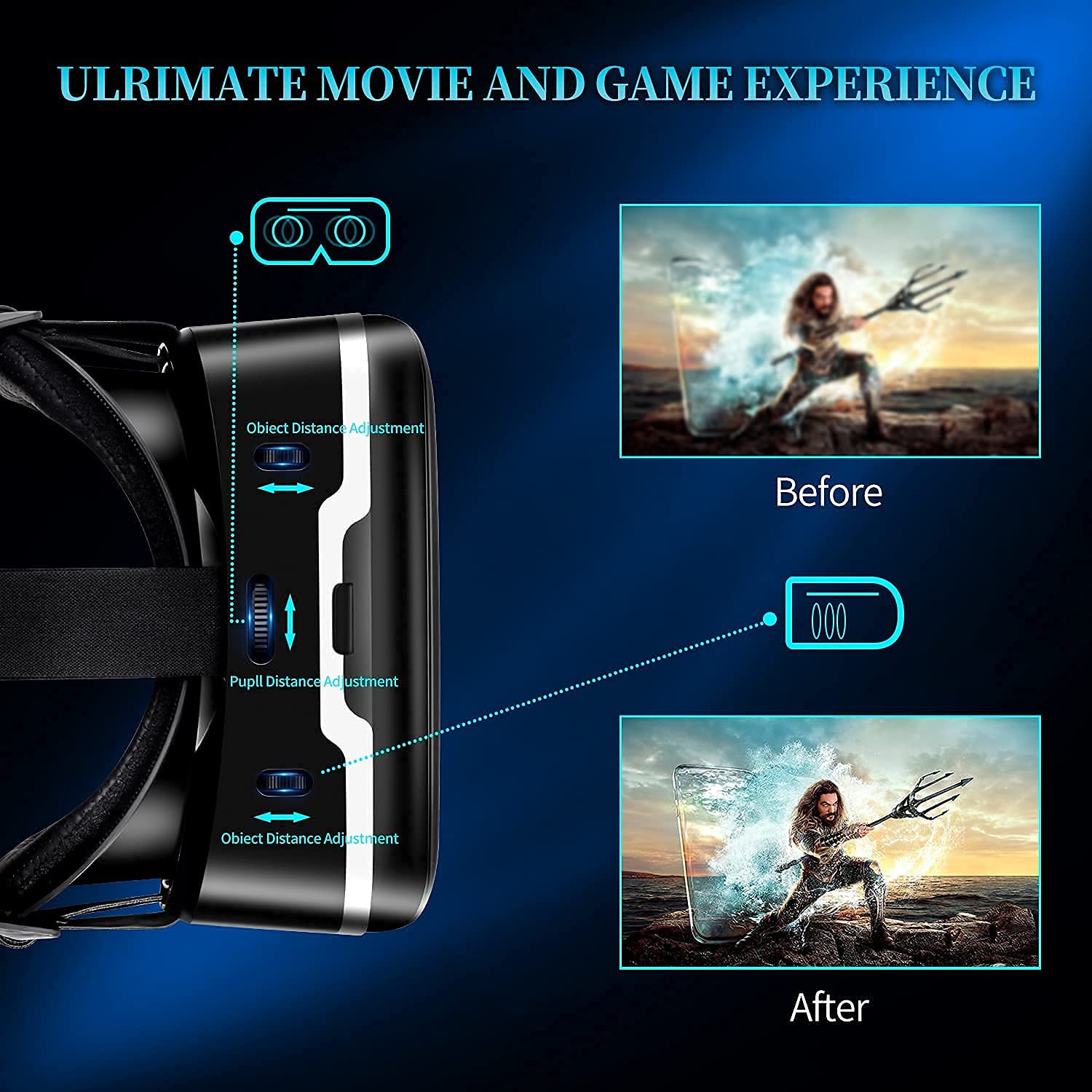 • Improved Visual Experience: Our 3D VR headsets offers FD and OD adjustments to expand the viewing angle and perfectly match focal distance and unilateral myopic alignment for reduced distortion, also sharp HD images are achieved by the aspheric and anti-distortion lens surface. Even to those near-sighted or far, with it, you can get an Incredible Visual Fidelity and Immersive Feeling via this virtual reality goggles