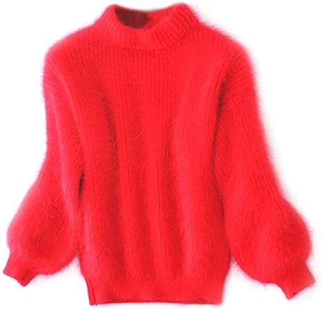 Angora Cashmere Blend Loose Warm Sweater Casual Thick Fleece Turtleneck Sweater Crewneck Knit Pullover Sweater