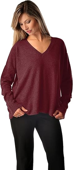 Cashmere Boutique 100% Pure Cashmere Pullover Boyfriend V Neck Sweaters for Women _ÑÐ Loose Fit, Long Sleeve and Classic Style