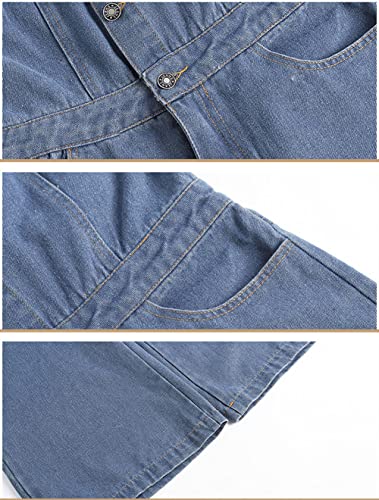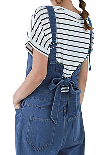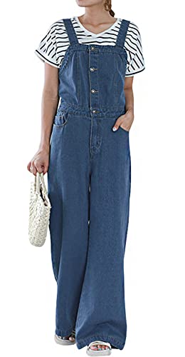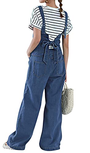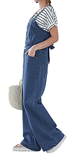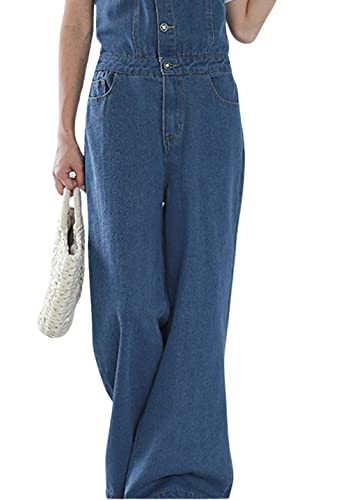CHARTOU Women Casual Wide Leg Denim Jean Jumpsuit Button Overalls Long Romper Dungarees Tie Knot Outfit (One Size,Blue)