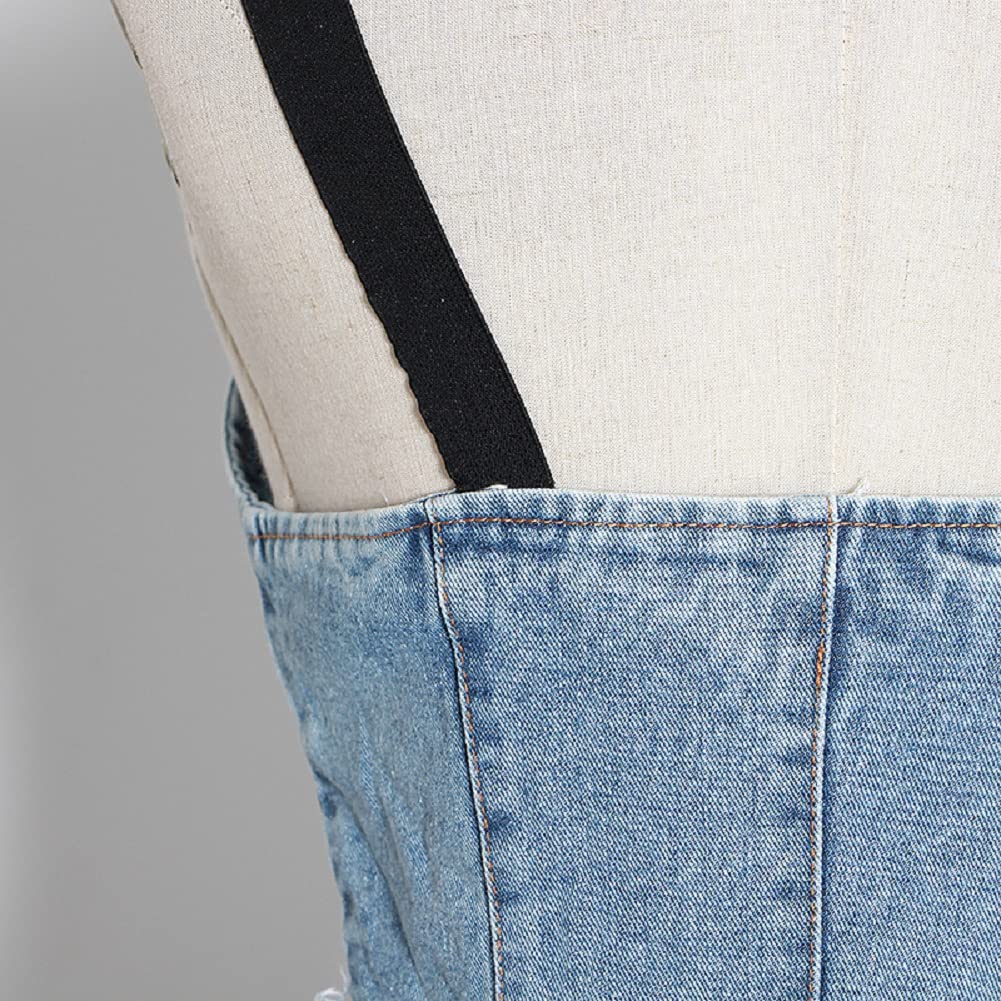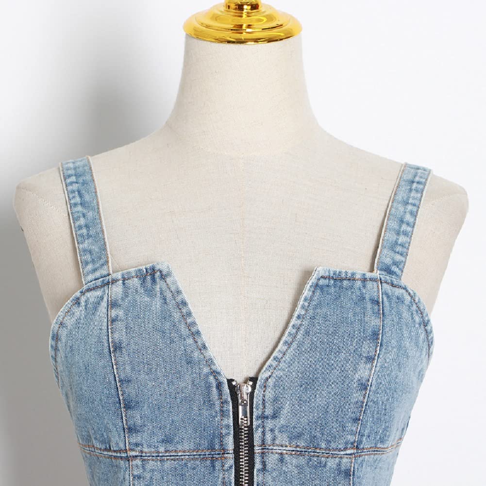 CHARTOU Women's Chic Strappy v Neck Front Zip Irregular Tassel Ruffled Mini Denim Dress (Large, Blue)