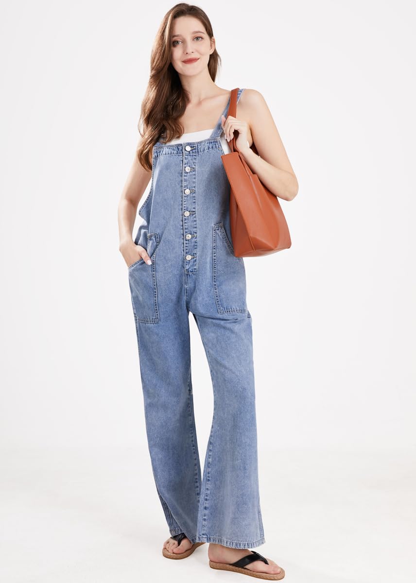 • Denim jumpsuit for women casual 2024, featuring adjustable straps over shoulder with tie knot back, functional and easy to adjust, front button down closure, straight leg silhouette, sleeveless, 2 patch pockets for hand.