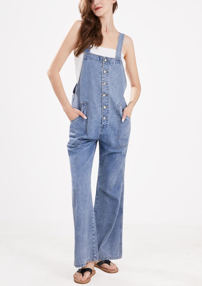 • The loose fit jean overalls are made of high quality, soft and durable denim material, which is comfy and cool to provide a pleasant wearing experience in spring and summer. Light blue and dark blue available.
