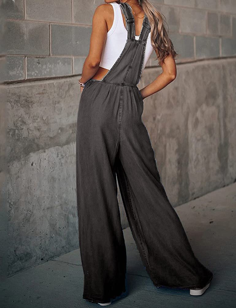 IDEALSANXUN Wide Leg Denim Jumpsuit for Women Denim Romper Jean Loose fit Overalls(Grey, M)