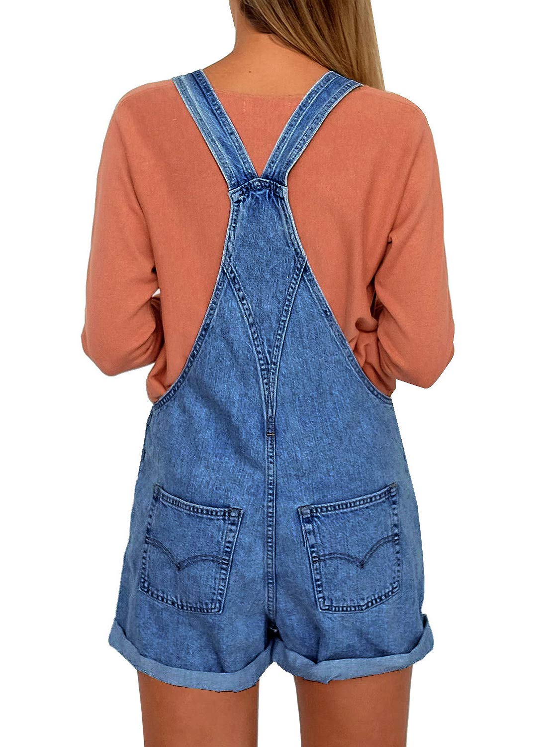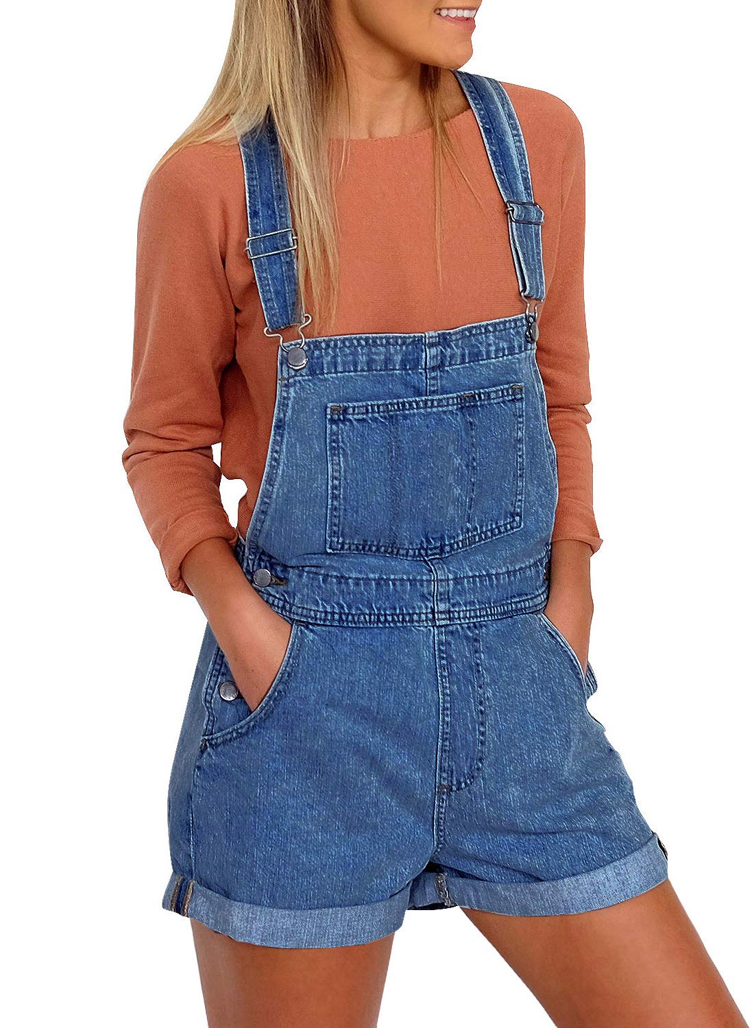 luvamia Women's Casual Adjustable Straps Cuffed Hem Denim Bib Overalls Shorts Romper Cape Blue Overalls Size Medium