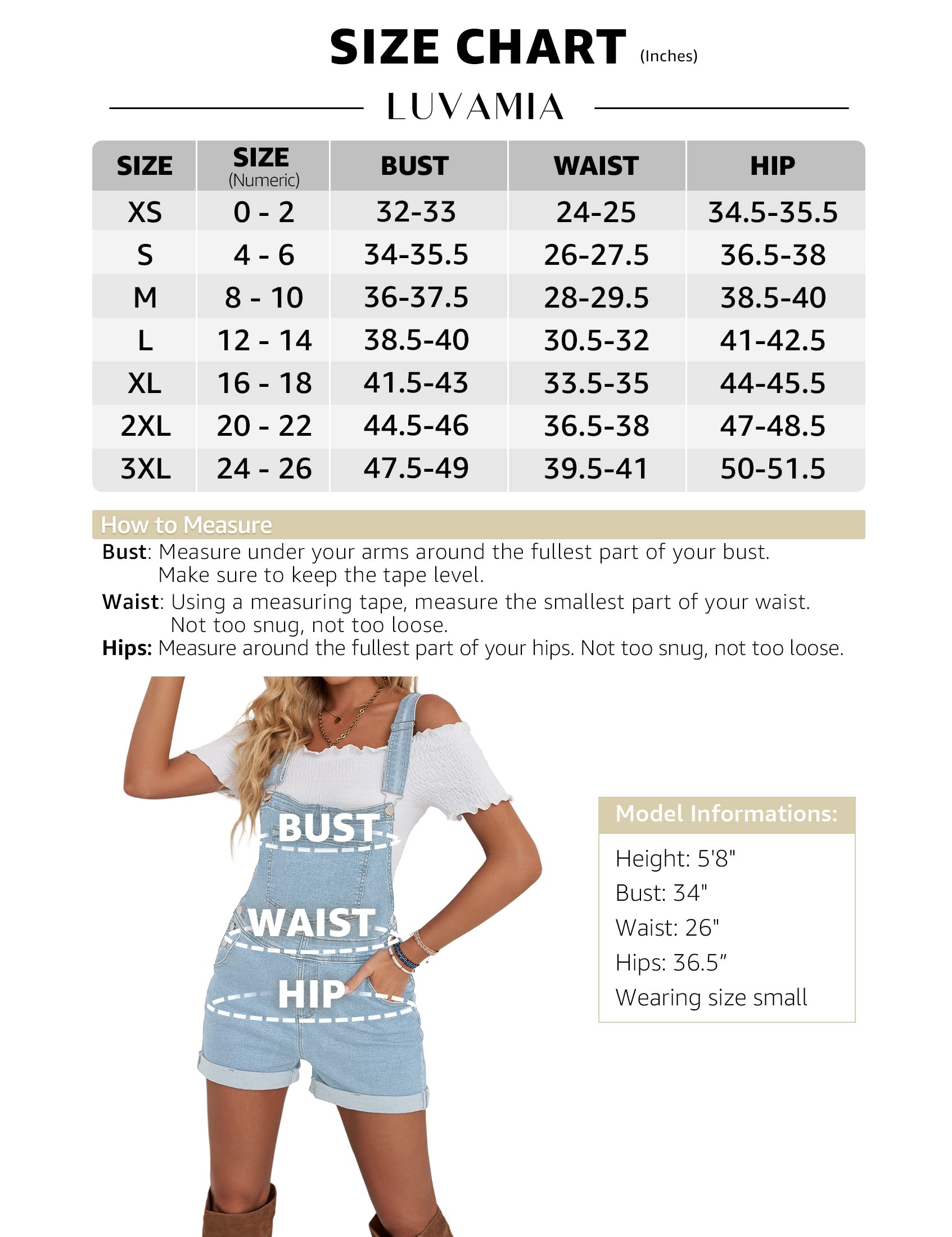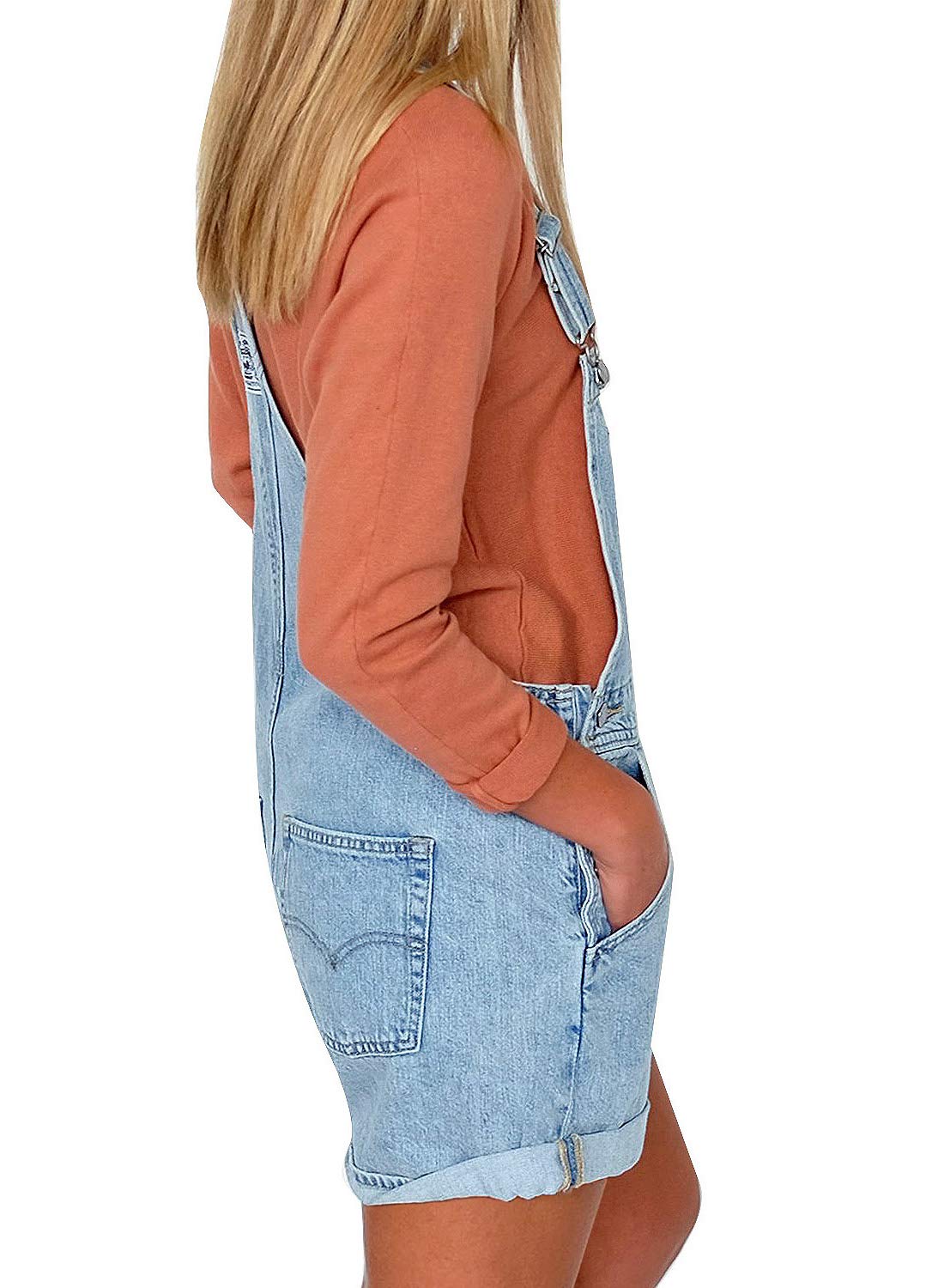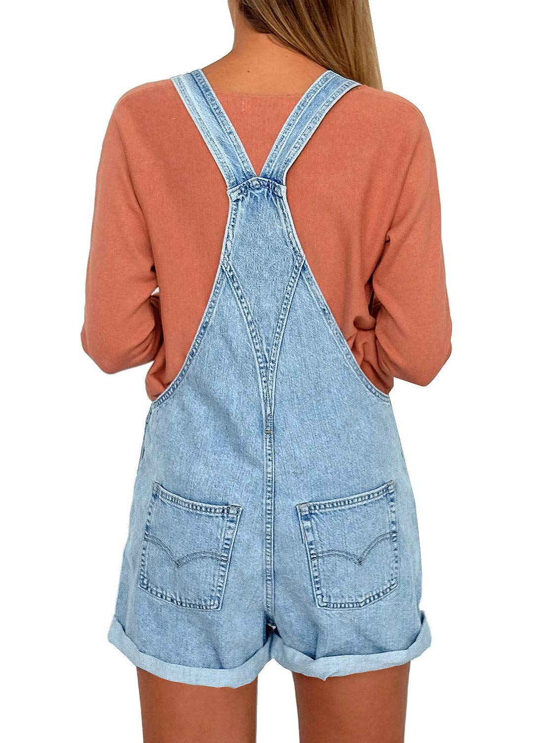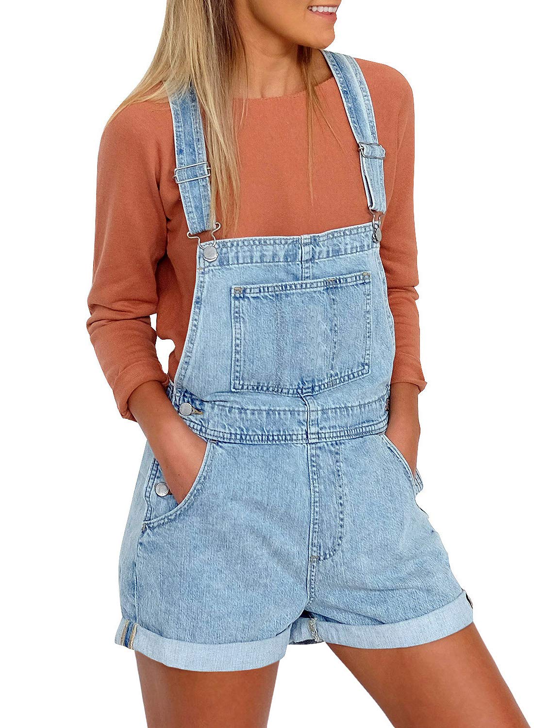 luvamia Women's Casual Adjustable Straps Cuffed Hem Denim Bib Overalls Shorts Romper Wategos Blue Overall Shorts Size Large