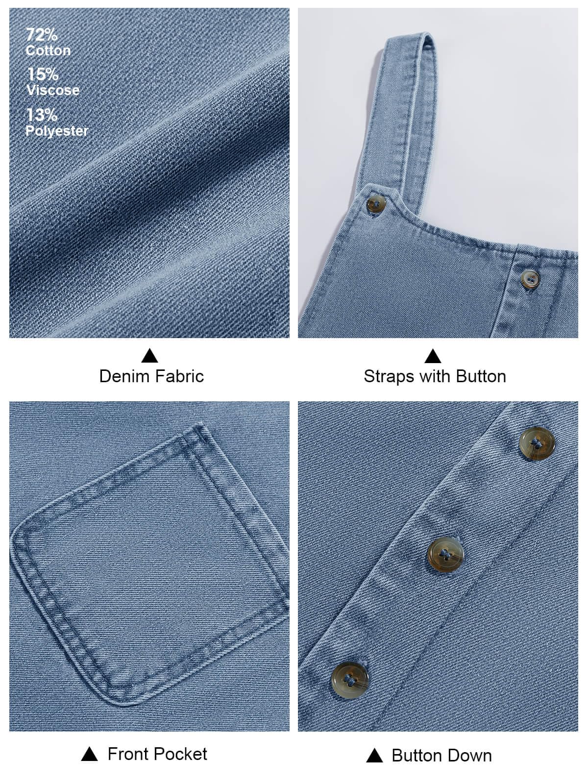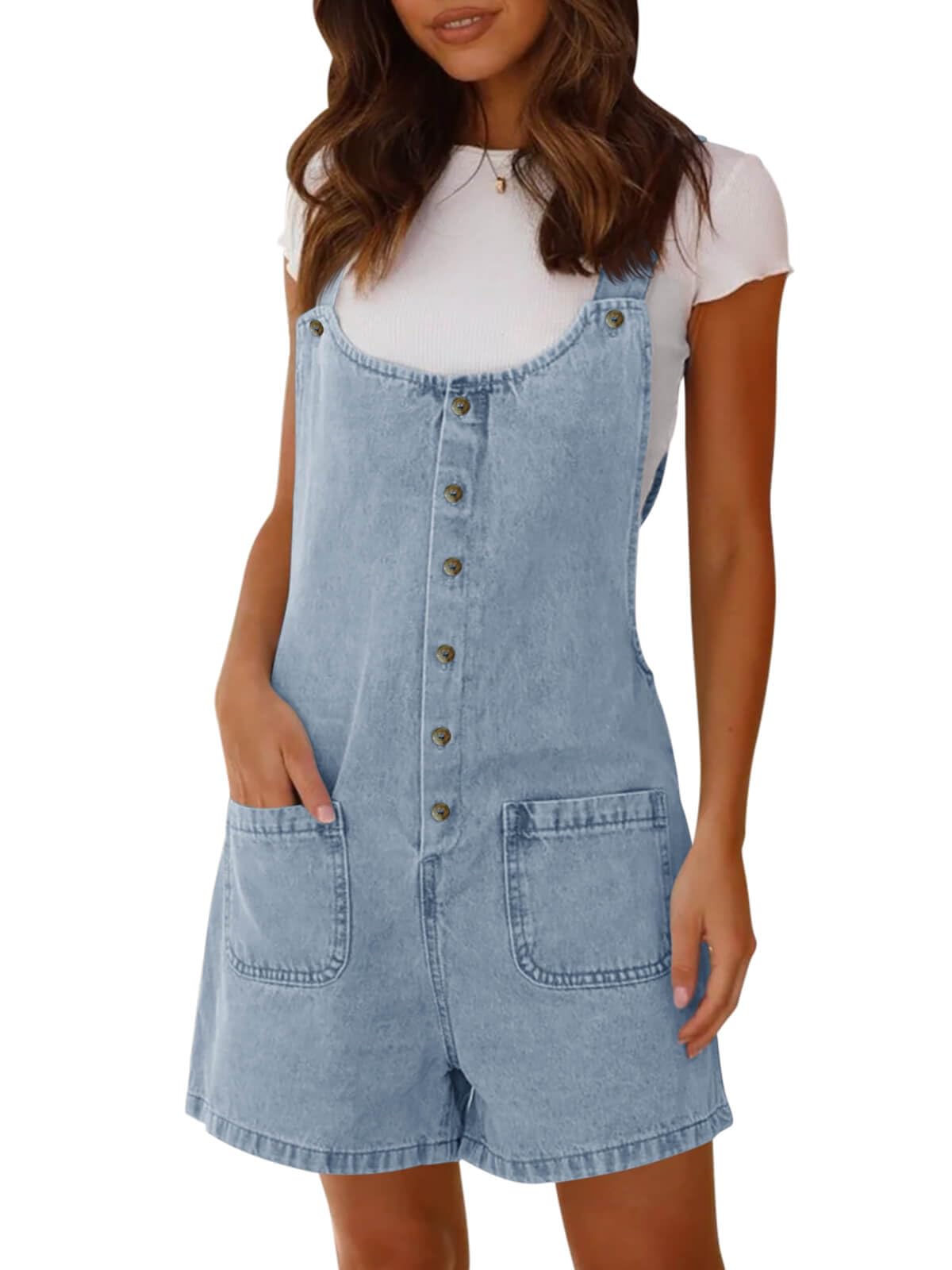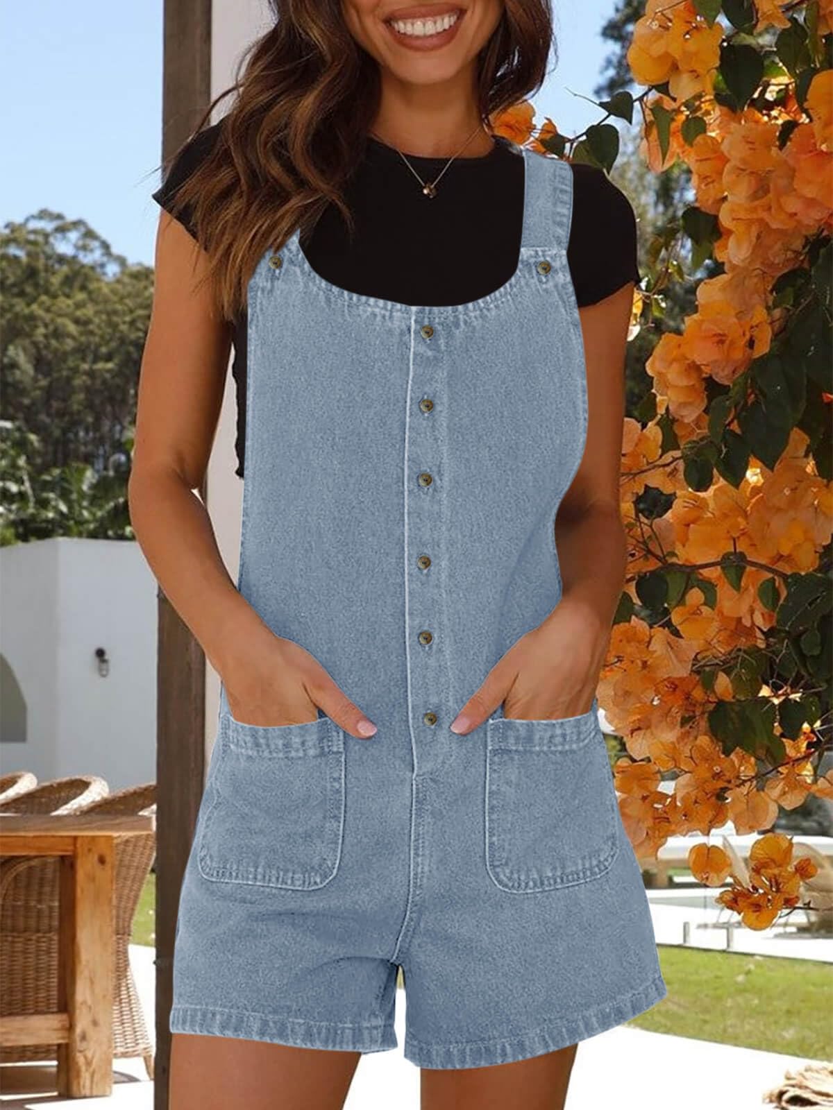 PLNOTME Women's Summer Denim Overall Shorts Button Up Front Sleeveless Jean Overalls Romper with Pockets