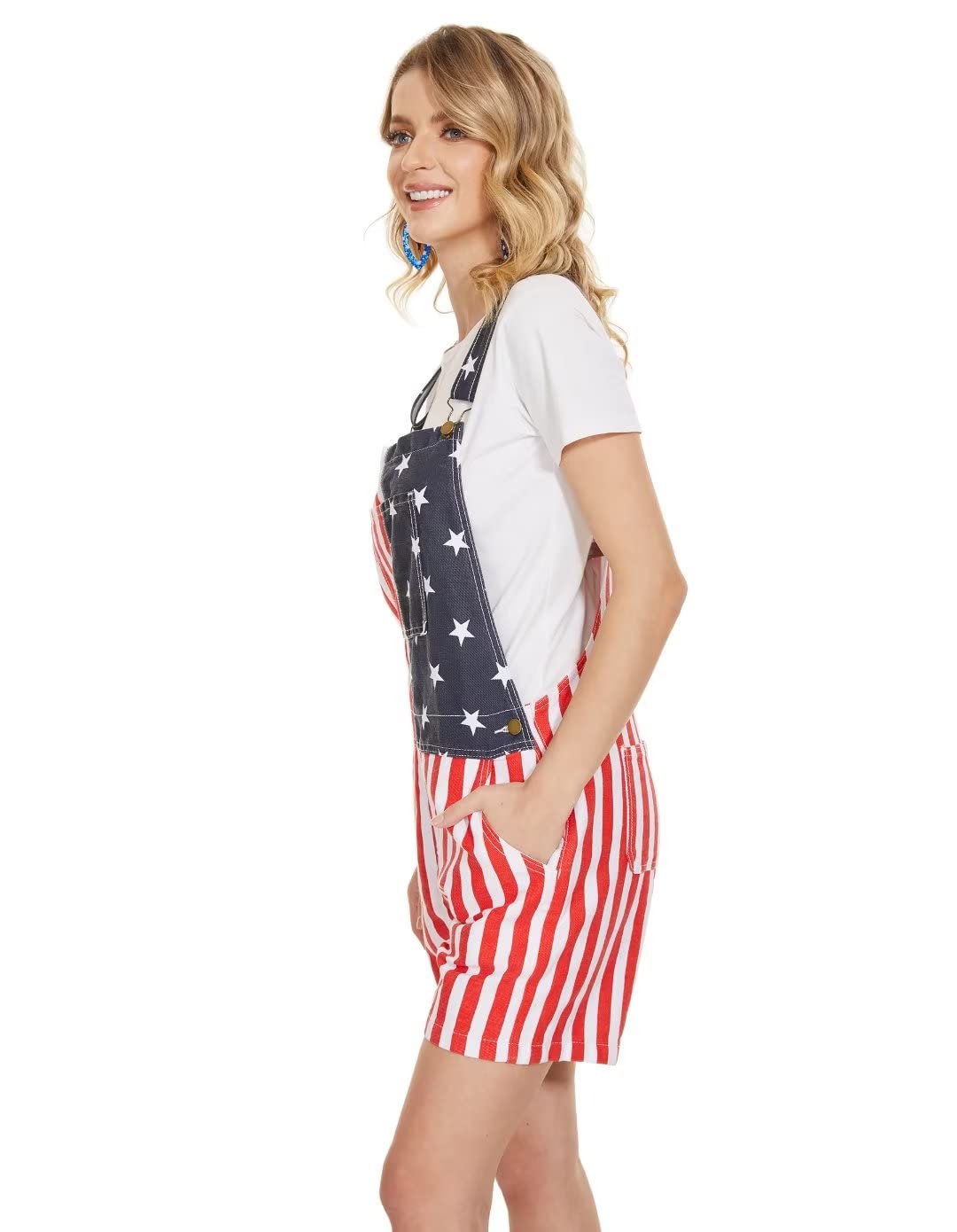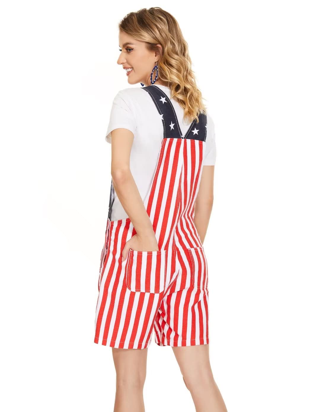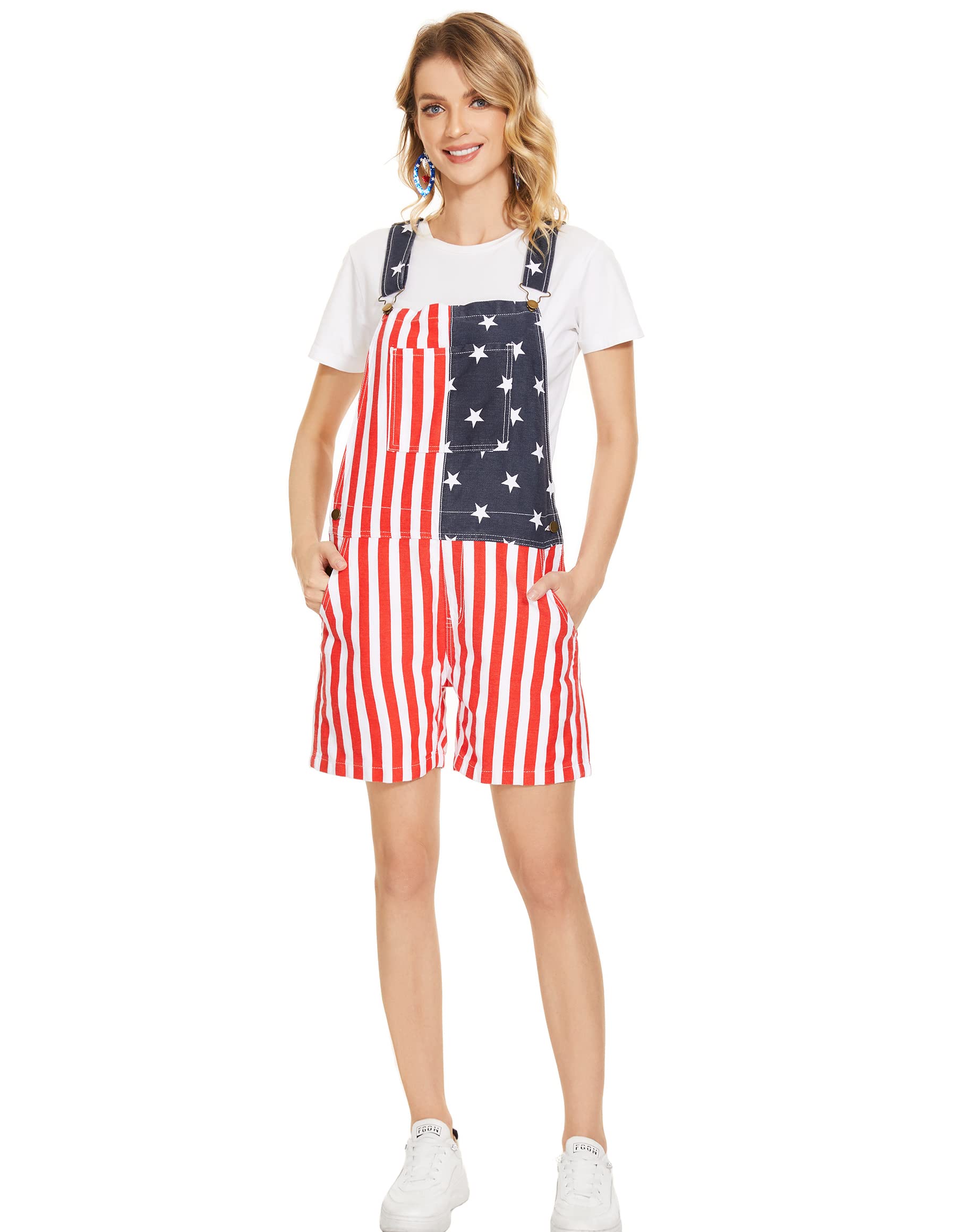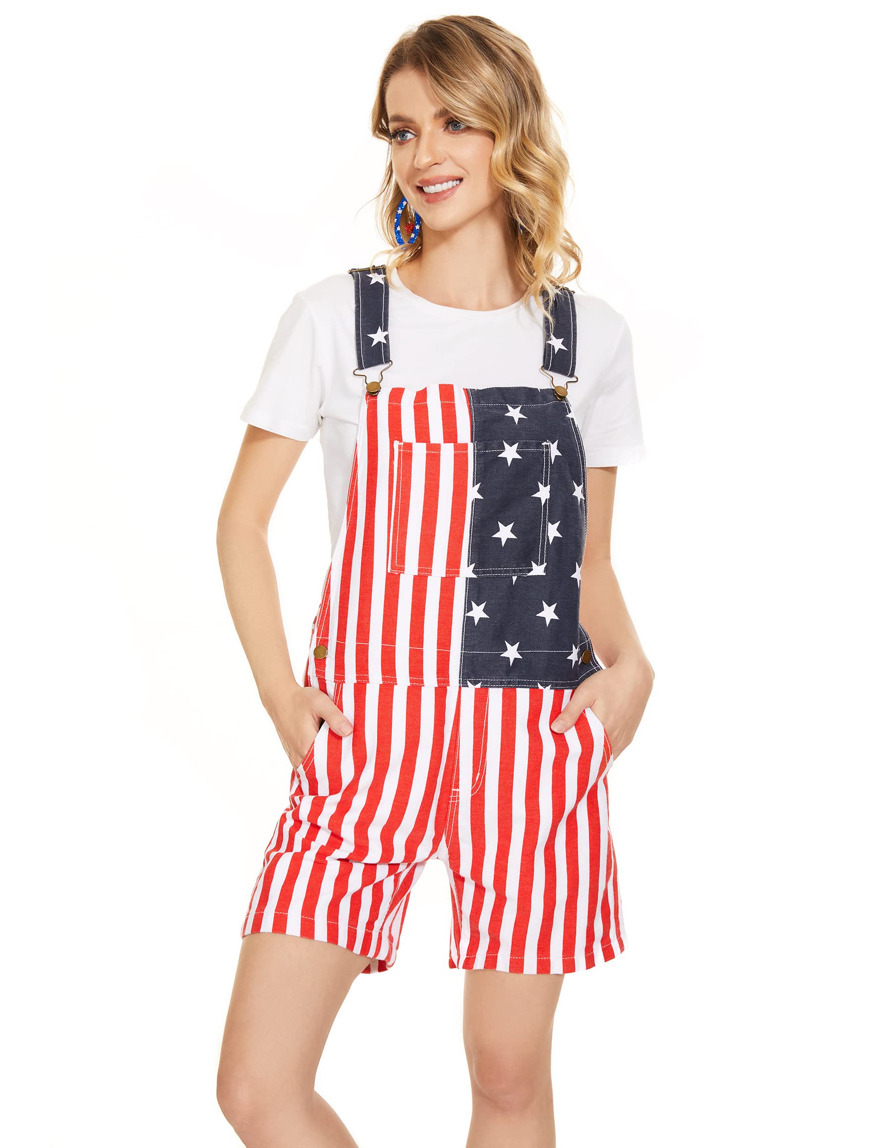 • 【Details of american flag romper women】The American flag overalls have a loose, straight fit.Striped overalls can freely adjust the height of the shoulder straps according to your height, body shape and wearing comfort. The july 4th jumpsuit for women pockets are a very practical size to accommodate small personal items. In addition to this, there are 4 pockets on the side and back.