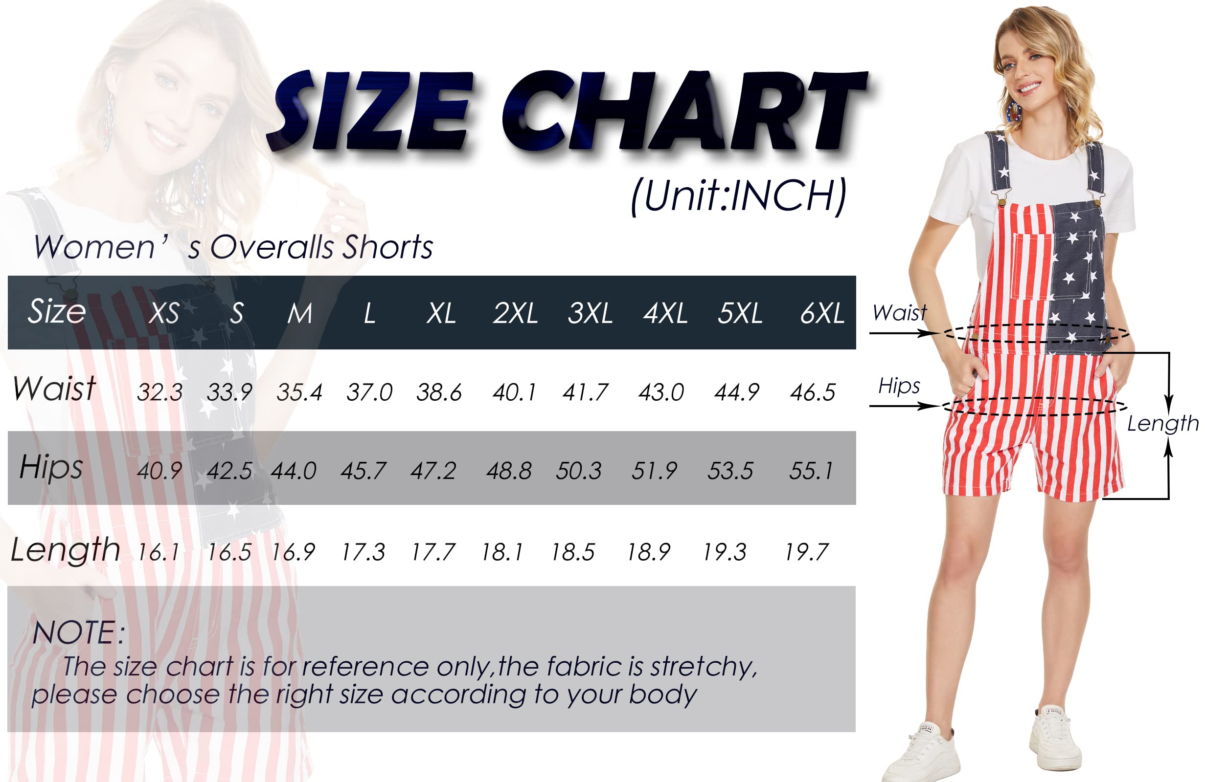 • 【4th of july overalls women Fabric】The fabrics of american flag overalls women are comfortable and breathable, colorful, stretchy and durable.