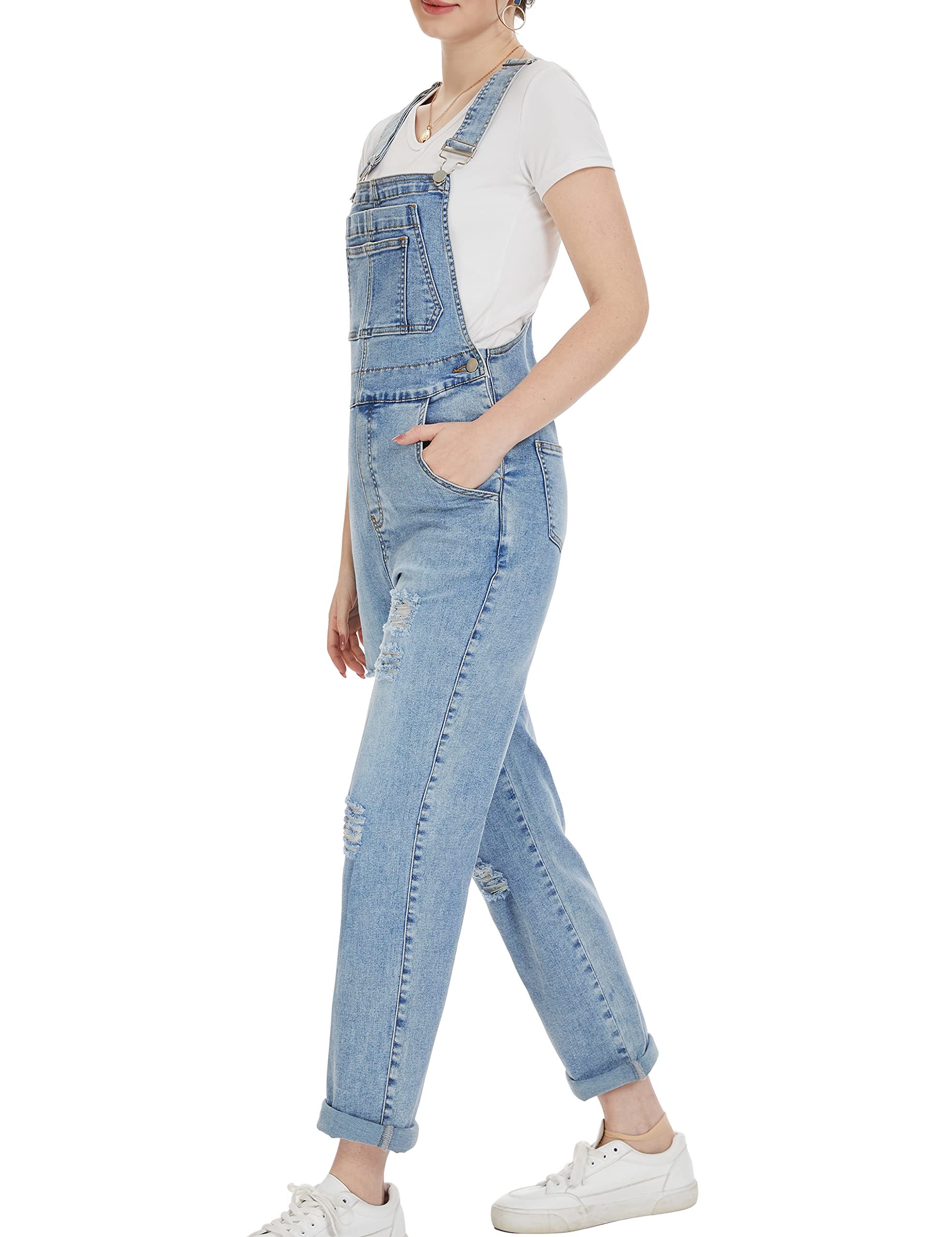 Women's Ripped Denim Overalls Comfy Stretch Bib Romper Adjustable Jean Jumpsuits (Blue,m)