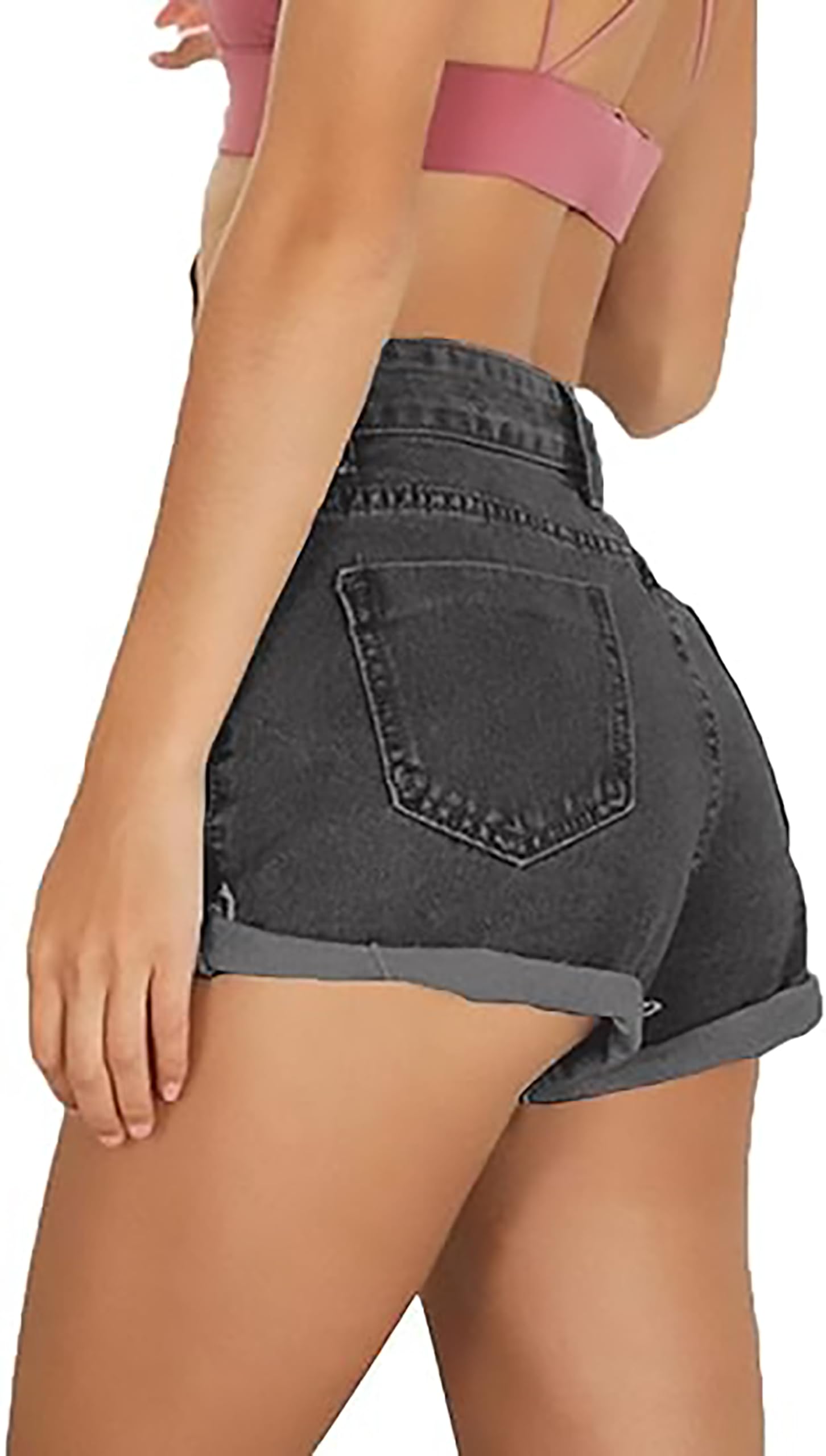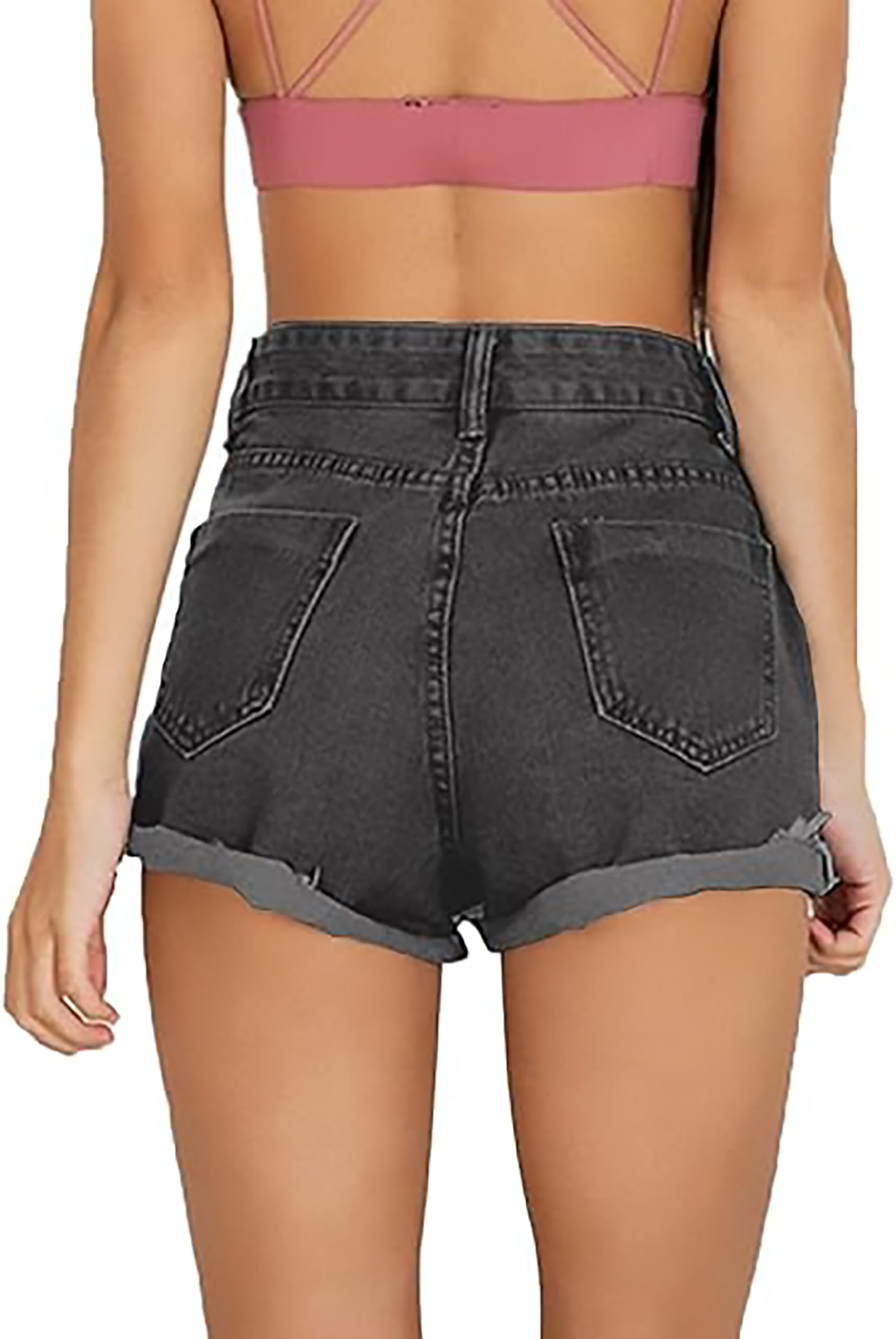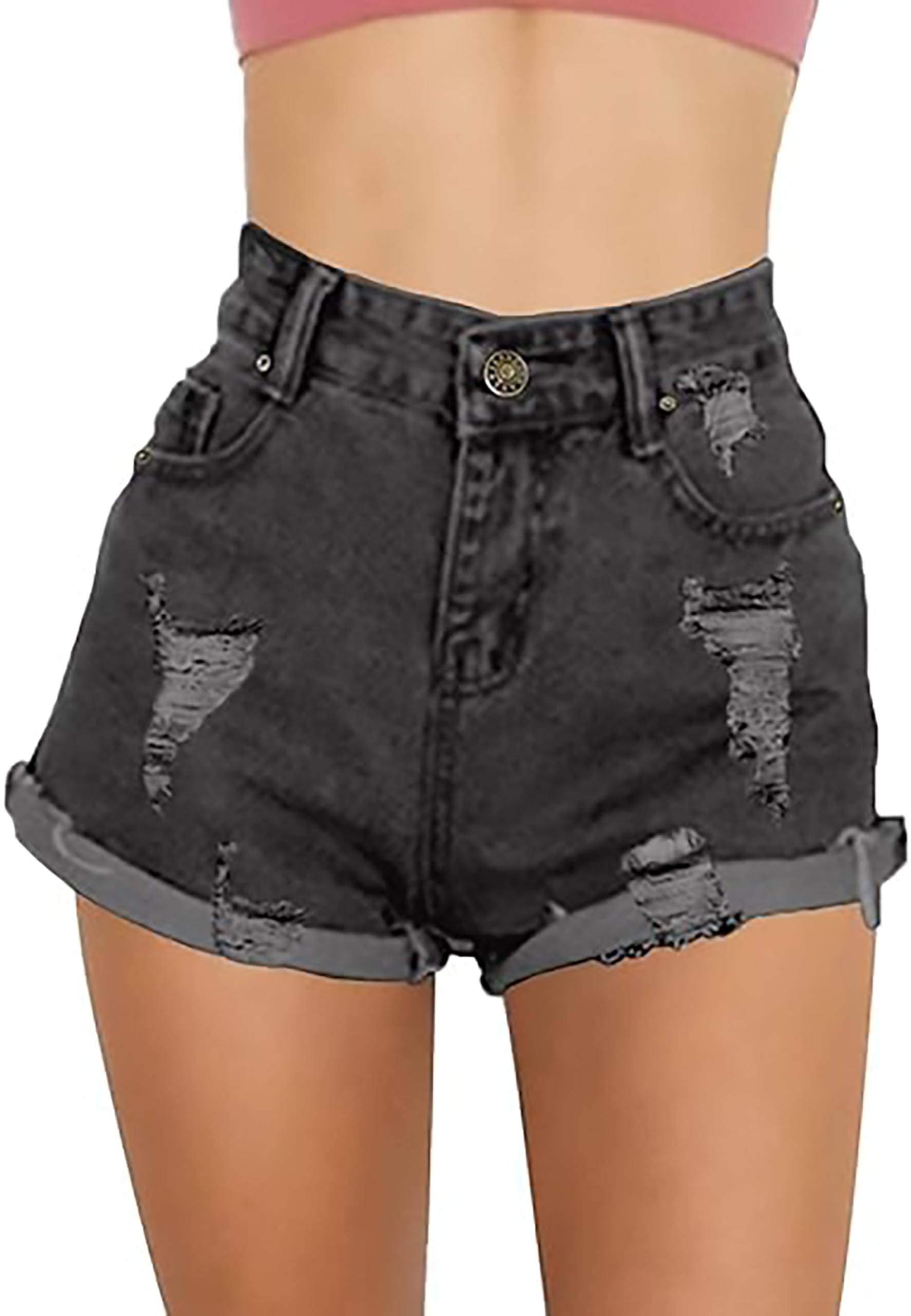 Cuihur Women's Summer Casual Jeans Ripped Denim Shorts High Waisted Rolled Hem Distressed Short Jeans a-Black Grey XL