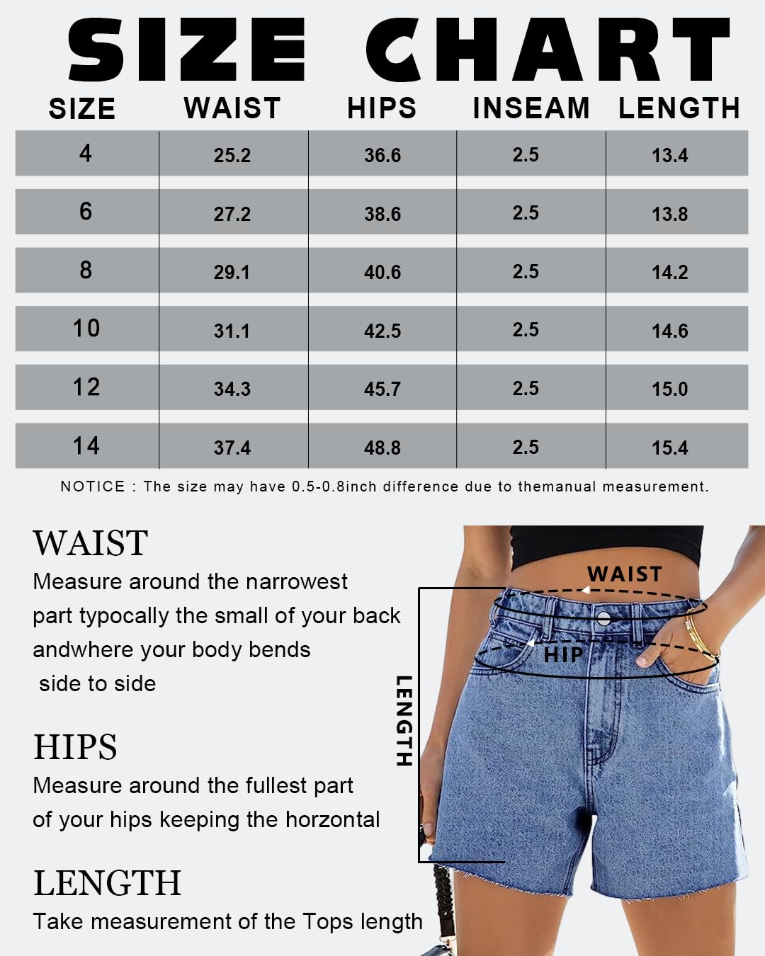 • Stylish Design:High waisted denim shorts, straight leg design, feature with raw cut off hem. Classic functional pockets and zip closure construction.