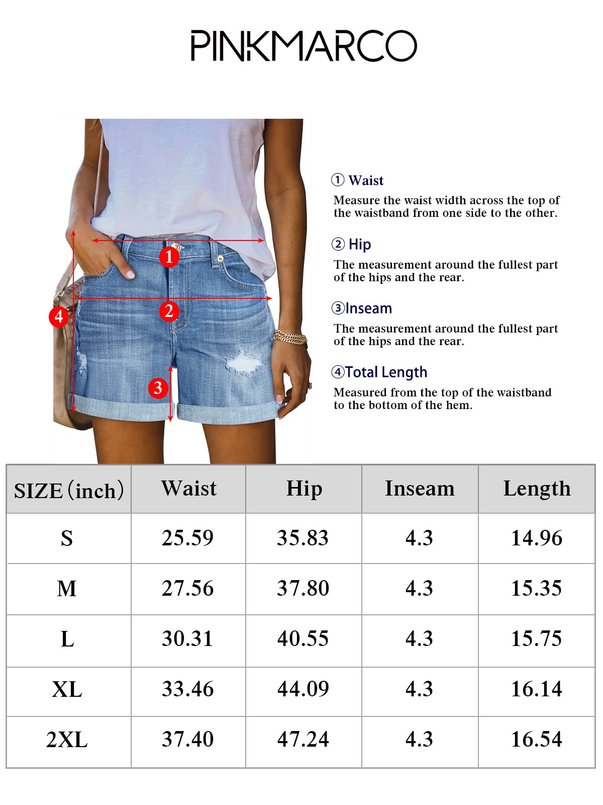 PINKMARCO Jean Shorts Womens High Waisted Mom Casual Summer Stretch Distressed Ripped Frayed Hem Denim Jeans Shorts for Teen Girls Dark Blue Large