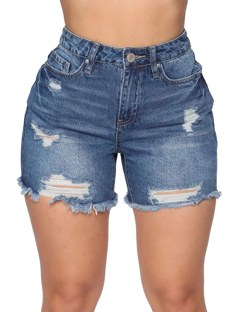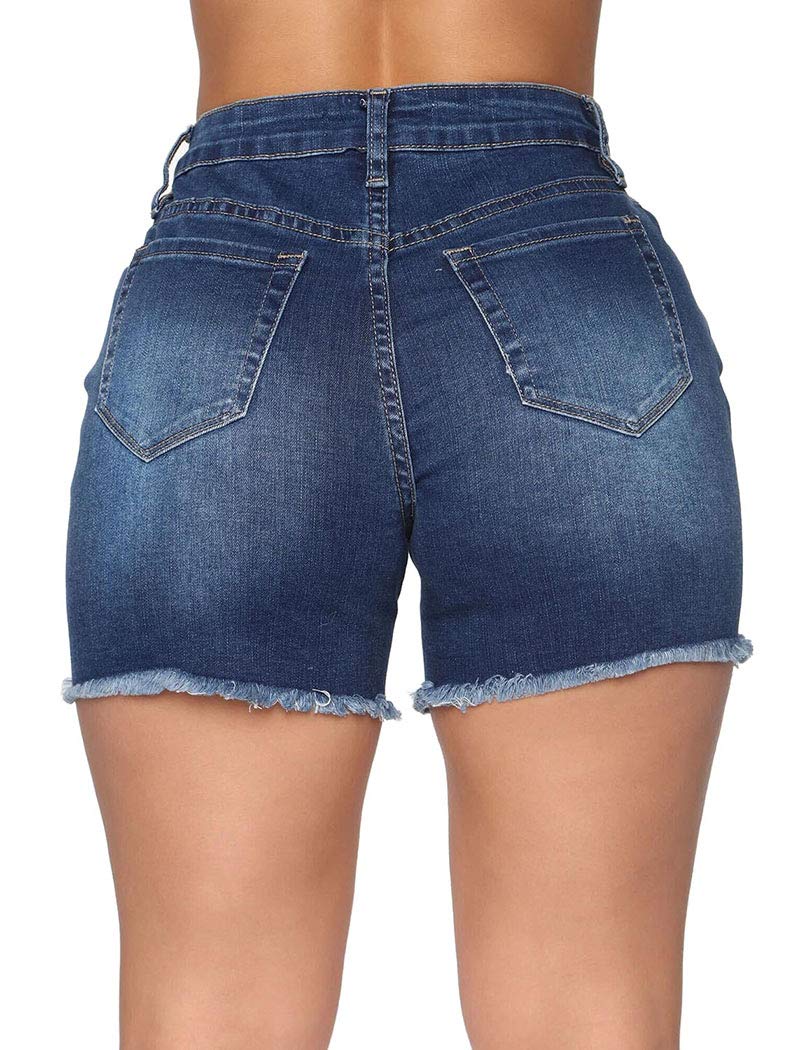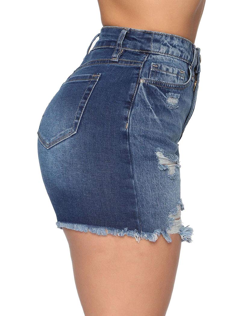 WAYRUNZ Womens Distressed Denim Jean Shorts Stretchy High Waisted Bermuda Short Jeans (Mixer Dark Blue, 7)