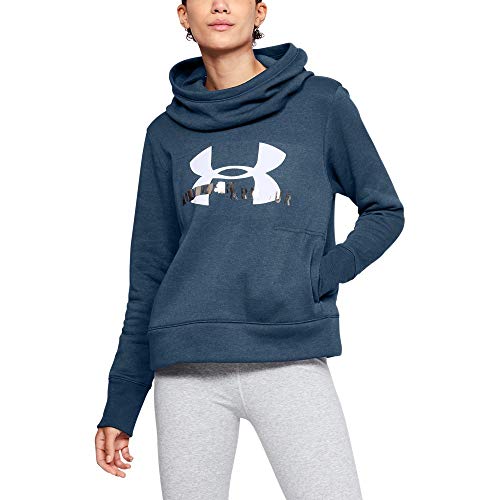 Under Armour Women's Cotton Fleece sportstyle logo hoodie, Static Blue (414)/Metallic Beige, Small
