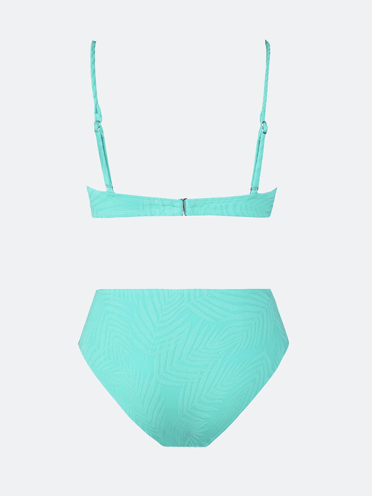 CUPSHE Women Swimsuit Bikini Set Two Piece Bathing Suit High Waisted Ribbed Texture Asymmetrical Bottom, M Light Green