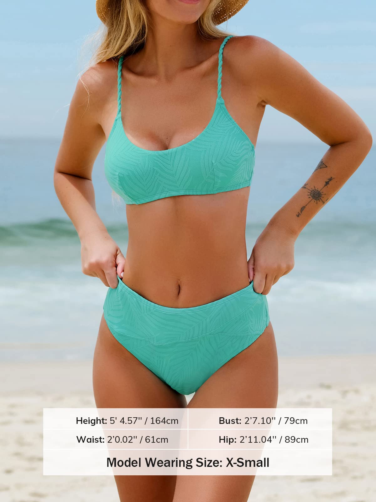 • Design: Let's fall in love with this scoop neck rib textured bikini set with adjustable spaghetti straps. Matching with a high waisted asymmetrical bottom
