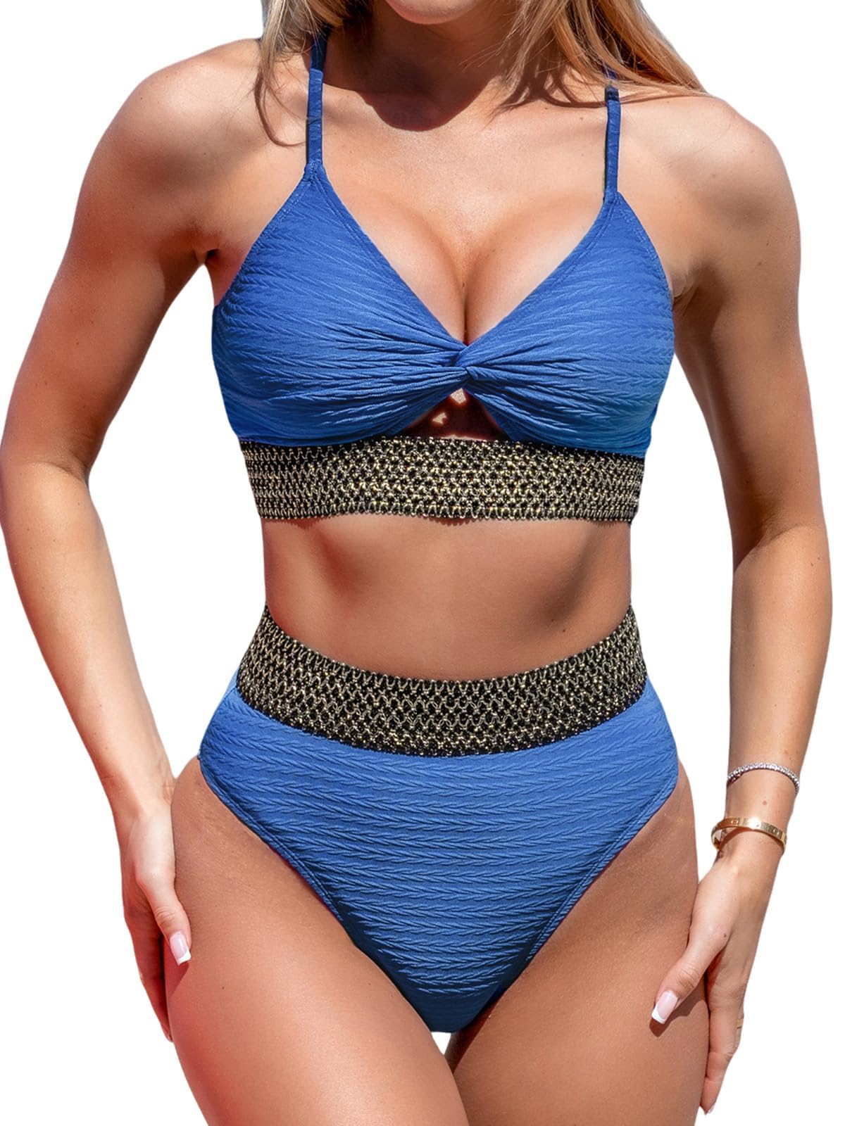 • Design: The Two Piece Swimsuit Features V Neck Crisscross Back Can Bring You A Perfect Fit And Comfort. This High Waisted Bikini Sets With Front Twist Keyhole Banded Design Can Catch Everyone's On The Beach.