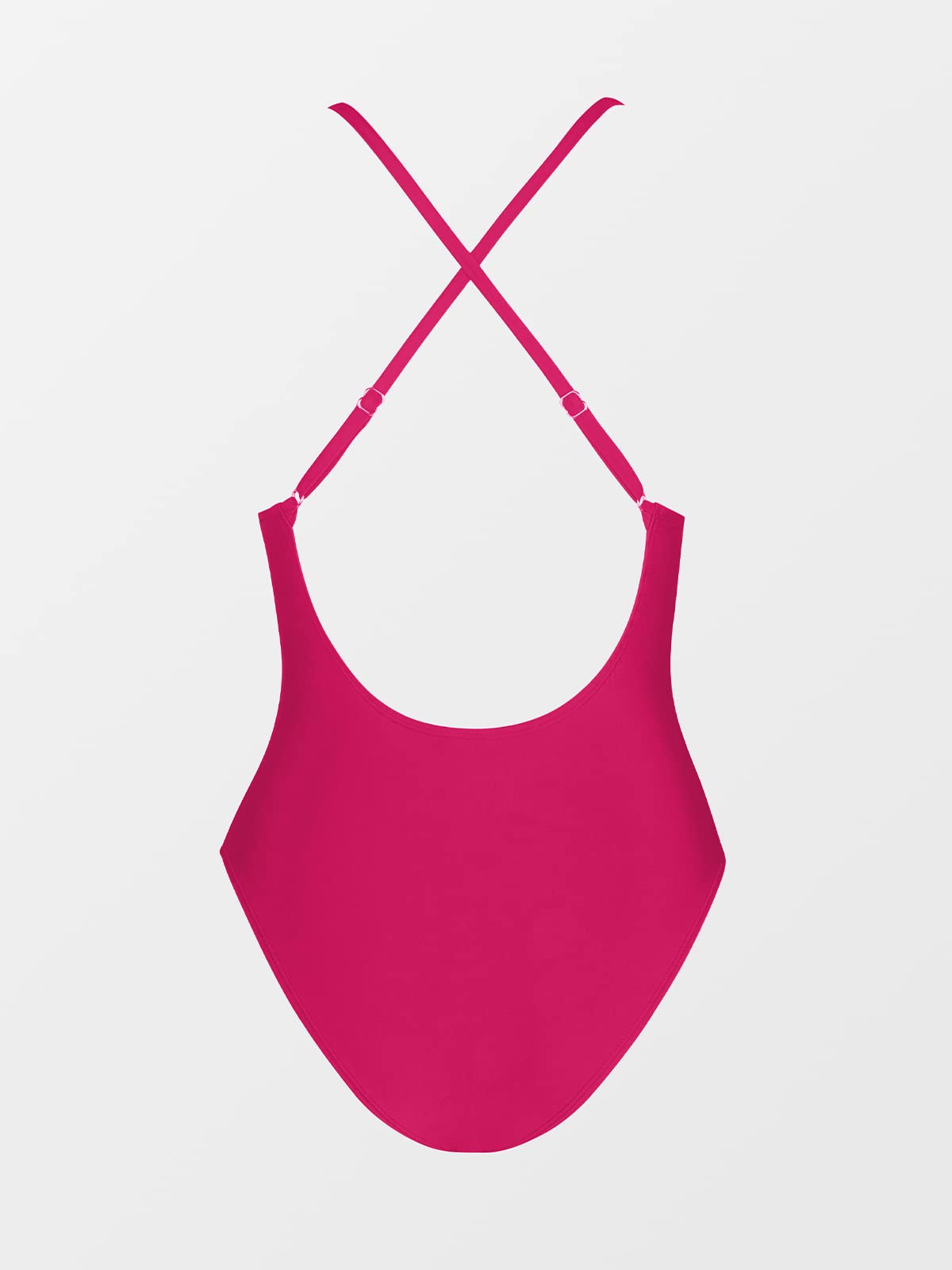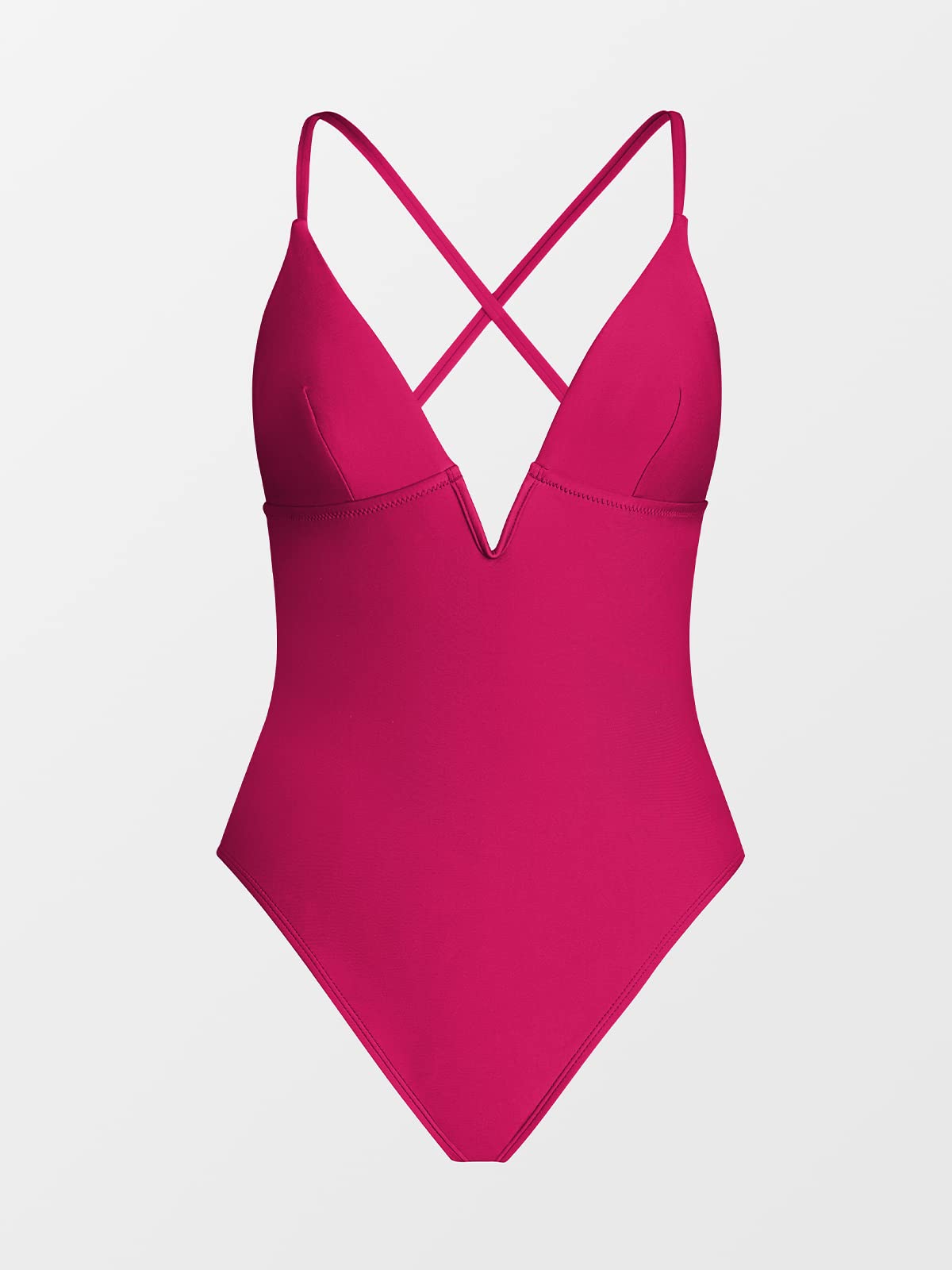 CUPSHE Women Swimsuit One Piece Bathing Suit Deep V Neck Crisscross Back Adjustable Strap Rose Red M